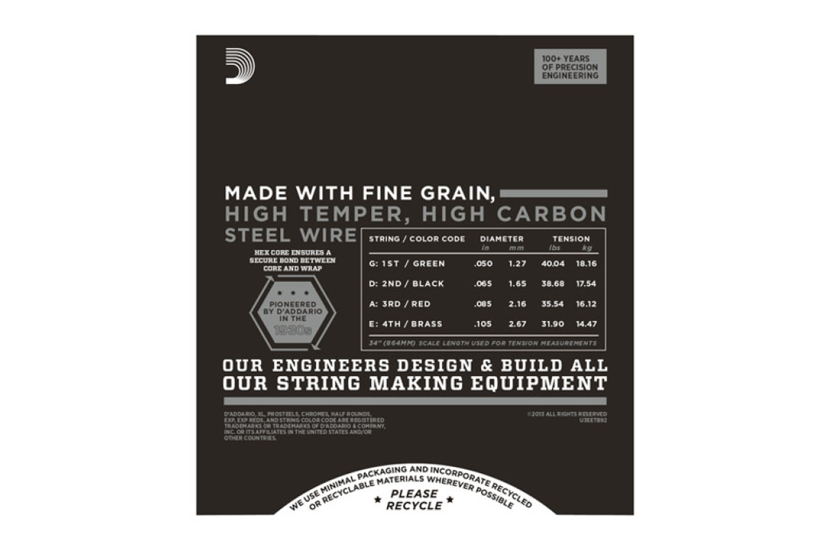 Созданные для получения глубокого и теплого звучания D'Addario XL Tapewound Bass используют обмотку из плоского черного нейлона, отполированного до ультра-гладкого покрытия. Эти сбалансированные и живущие струны специально созданы для обеспечения оптимального натяжения и подобраны по толщине, чтобы становиться на стандартные басовые порожки и бриджи. Их можно использовать так же и на беспорядочных басах, чтобы получить классический винтажный саунд от контрабаса до традиционных струн с плоской обмоткой.