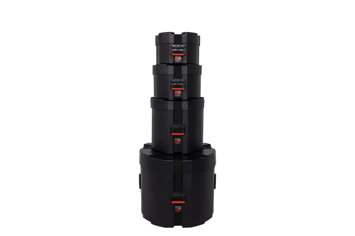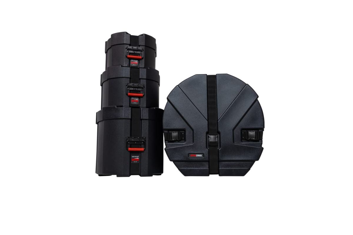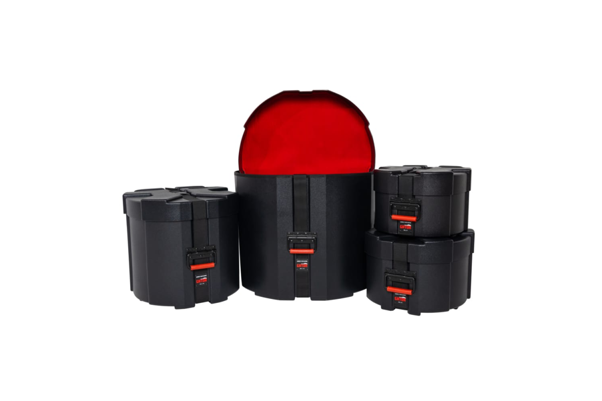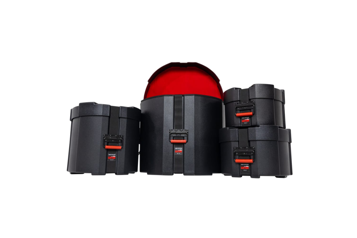 Комплект Gator Grooves Roto-Molded Rock Pack включает кейсы для бас-барабана 22” x 18”, томов 10” x 8” и 12” x 9”, а также напольного тома 16” x 16”.