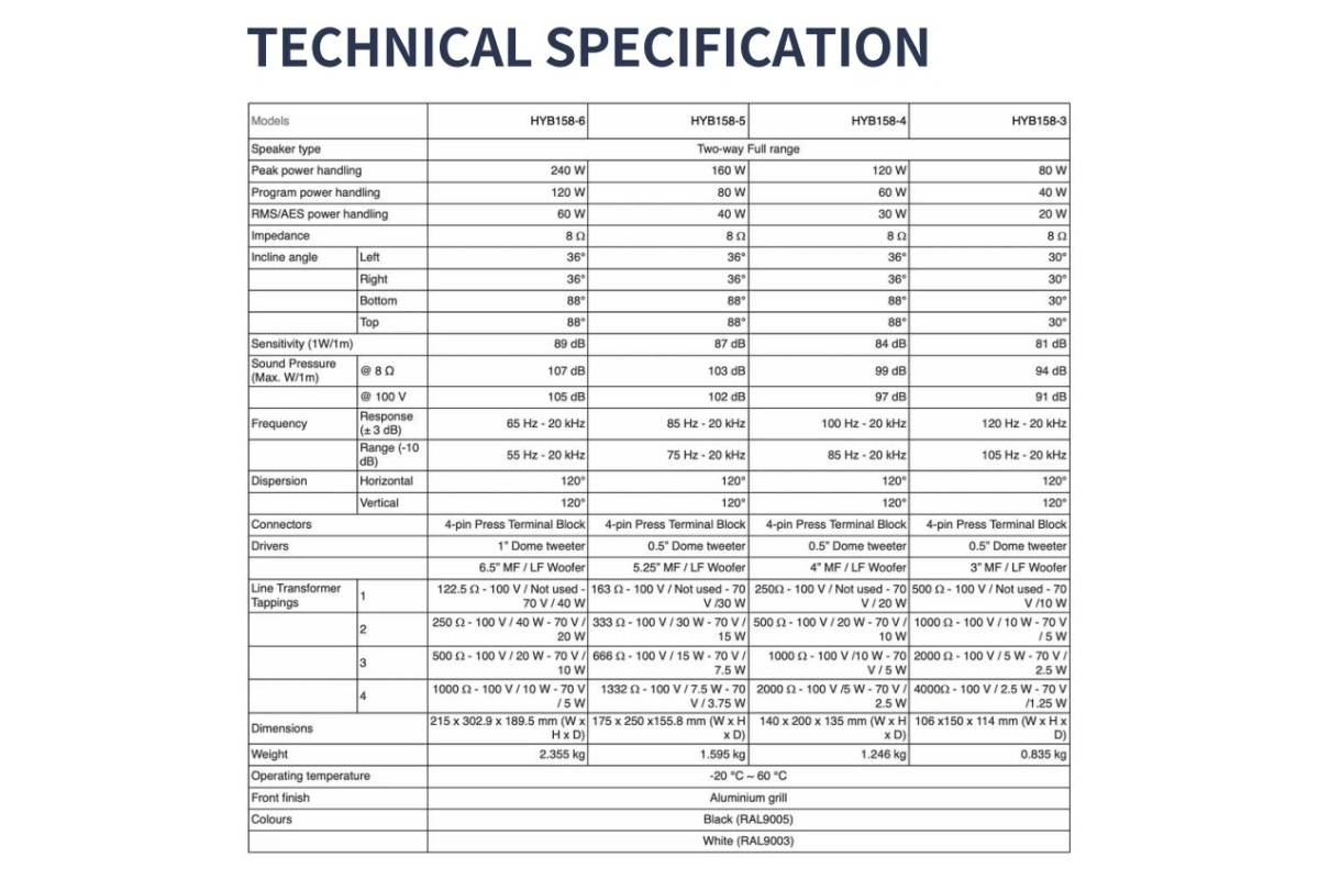 HYB158 Series предлагает идеальное аудио решение для создания домашнего кинотеатра или прослушивания музыки по всему дому. Благодаря регулируемой мощности и гибкости установки он легко адаптируется к любой планировке и индивидуальным предпочтениям.