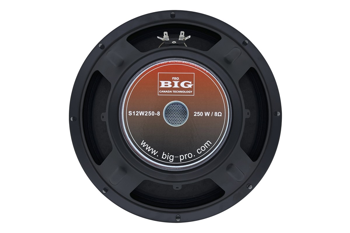 BIG S12W250-8 — високоякісний низькочастотний динамік з 12" діаметром та сталевим каркасом, створений для професійних аудіосистем, сабвуферів і сценічного обладнання. Забезпечує потужне та чисте відтворення низьких частот, ідеально підходить для концертів, клубів та студій.
