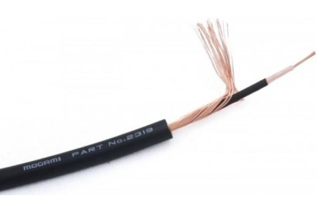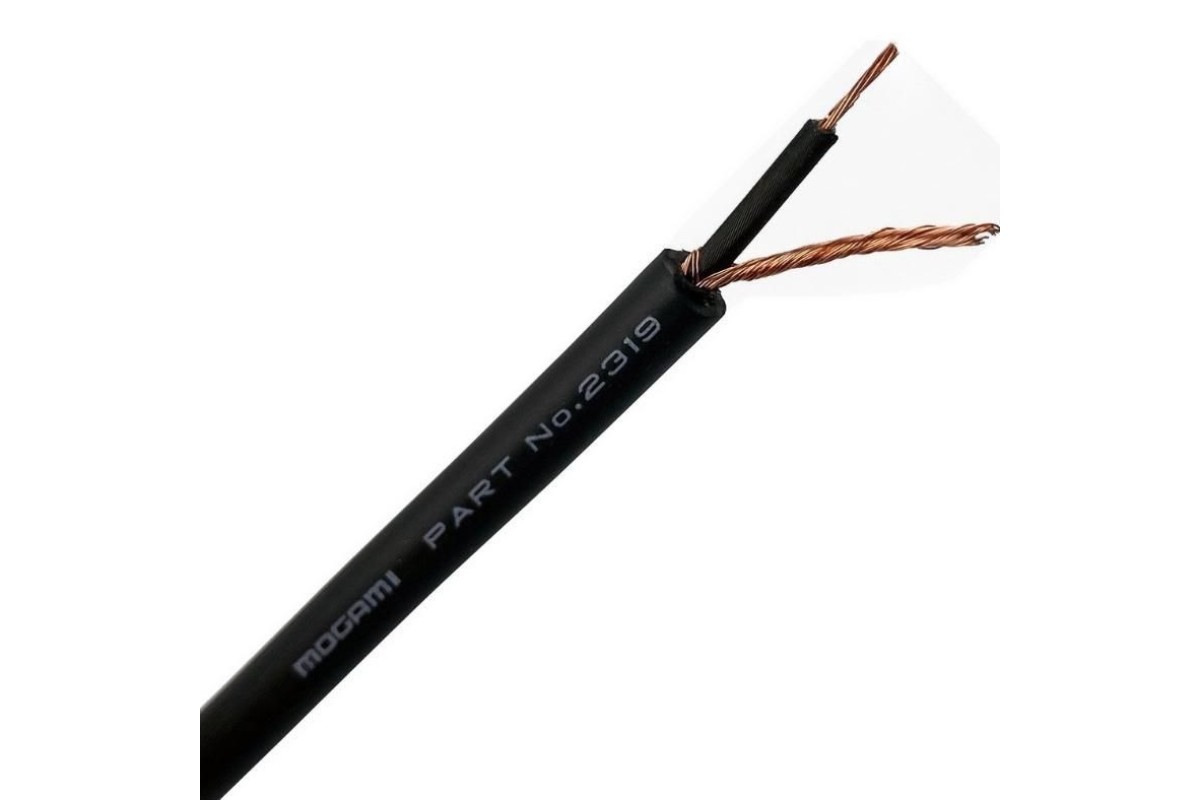 MOGAMI W2319 - профессиональный инструментальный кабель в бухте, сечение 0.305mm², диаметр оболочки 5.0Ø мм, сопротивление кабеля 0.064Ω/m, цвет черный, цена за 1м.