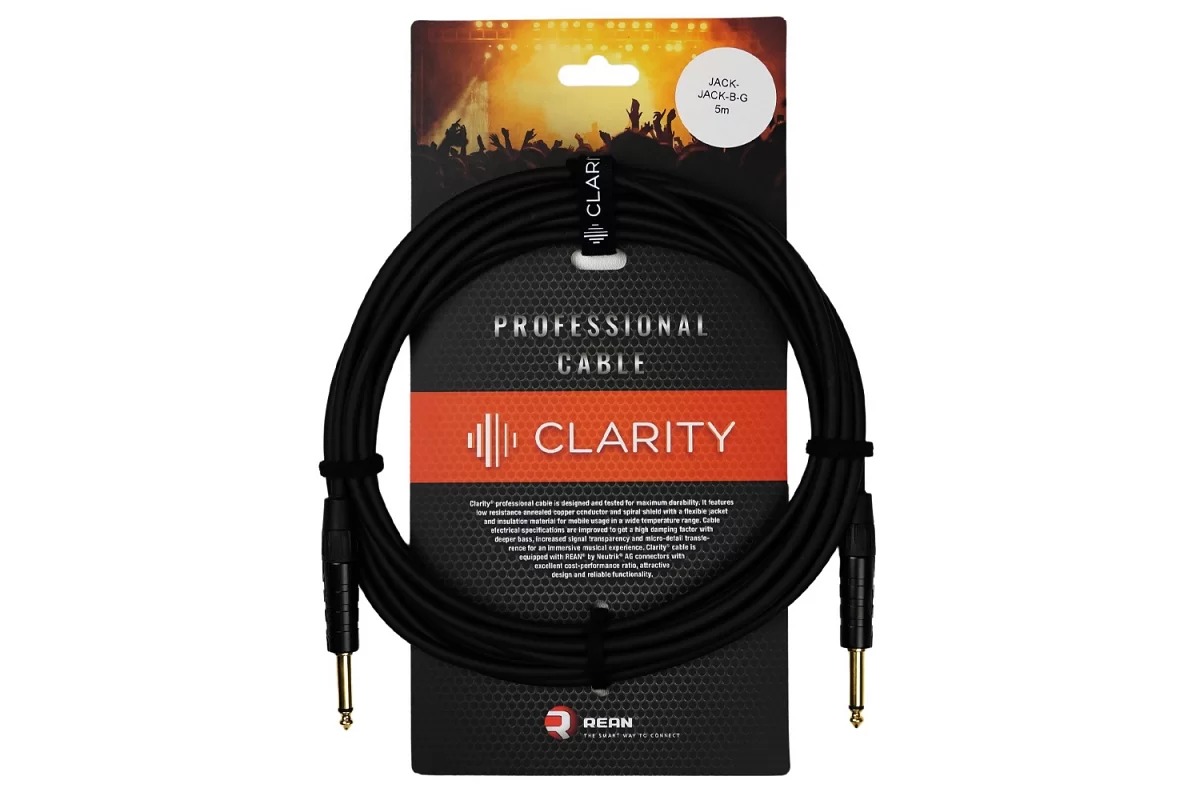 Профессиональный инструментальный кабель 0.51мм/AWG 20 с медной спиральной оплеткой 29 x 0.15мм и гибкой оболочкой PVC. Разъем REAN® by Neutrik®, jack TS Black – jack TS Black, длина 5м.