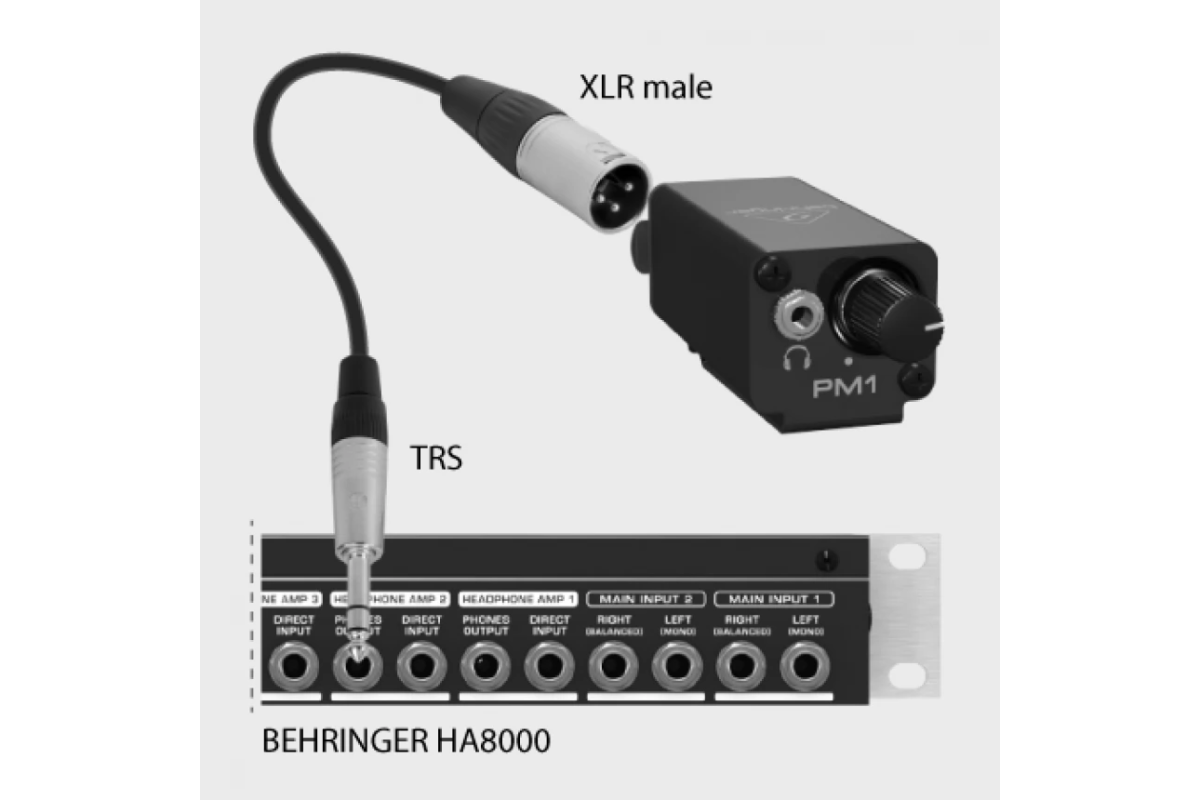 PM1 имеет входной XLR коннектор, поддерживающий стандартные микрофонные кабели, который оснащен механизмом блокировки, предотвращая случайные отсоединения. Просто нажмите на фиксатор, смонтированный рядом с разъемом для отсоединения кабеля. Важно, что XLR вход не предназначен для приема балансных линейных сигналов, поскольку необходим усиленный источник. Для подключения стерео источника, такого как усилитель для наушников, следует использовать кабель TRS-XLR (папа-папа).