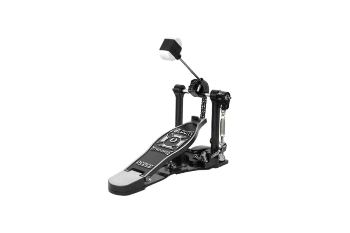Одинарная педаль для бас-барабана Peace P-38970DC – многофункциональная модель, рассчитанная на действительно длинную службу. Изготовлена из высококачественных материалов, она выдержит любые нагрузки. Двойной цепной привод обеспечивает надежность конструкции, а с помощью регулируемой базисной платформы Вы сможете настроить высоту педали и угол наклона колотушки относительно пластика барабана по своему усмотрению. Поворотная двусторонняя колотушка из пластика позволит продолжить ее использование по мере постепенного износа ударной поверхности. В комплект к педали также входит удобный боковой зажим для крепления педали к барабану со специальным ключом.