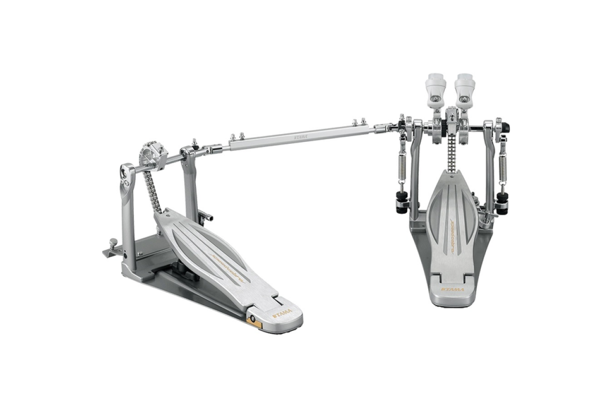 Двойная педаль для бас-барабана серии Speed Cobra (обновленная), удлиненная платформа, колотушки Accu-Strike, подшипник Oiles, Speedo-Ring, крепление Para-Clamp II Pro, крепление колотушки Vari-Pitch, в комплекте кейс.