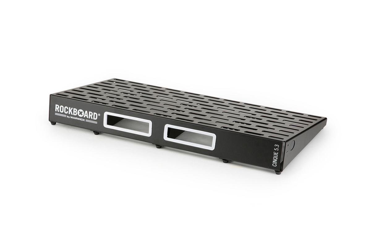 Оригинальная легкая жесткая и крепкая конструкция основана на одном изогнутом листе алюминия холодной прокатки и дополнена U-образными вертикальными скобами для дополнительной стабильности. Инновационный слотированный дизайн площадки не только отличается изяществом и лаконичностью, но также позволяет спрятать коммутационные кабели и разместить от 15 до 25 педалей. А для удобства хранения и транспортировки Rockboard CINQUE 5.3 комплектуется фирменной сумкой с ремнем через плечо.