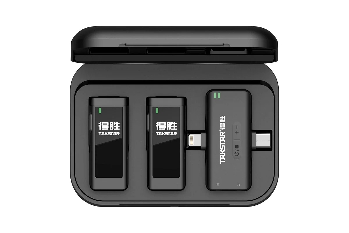 • Включает зарядный кейс для хранения и зарядки передатчиков и приемников