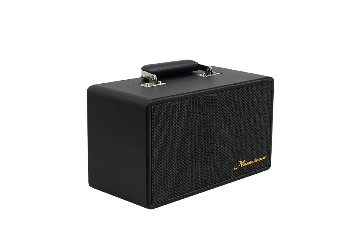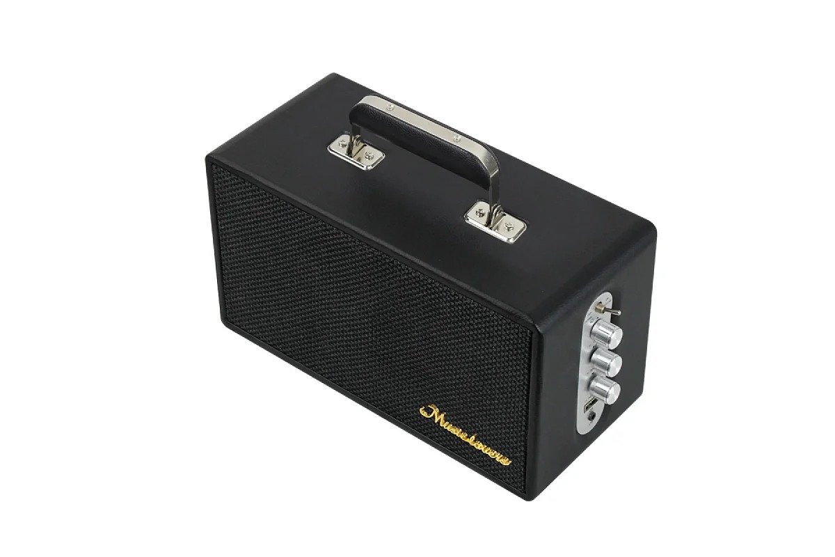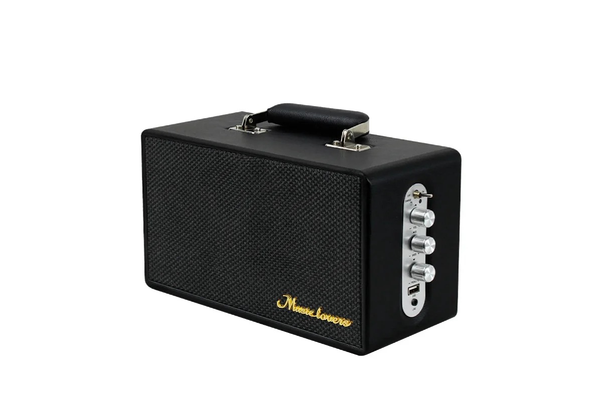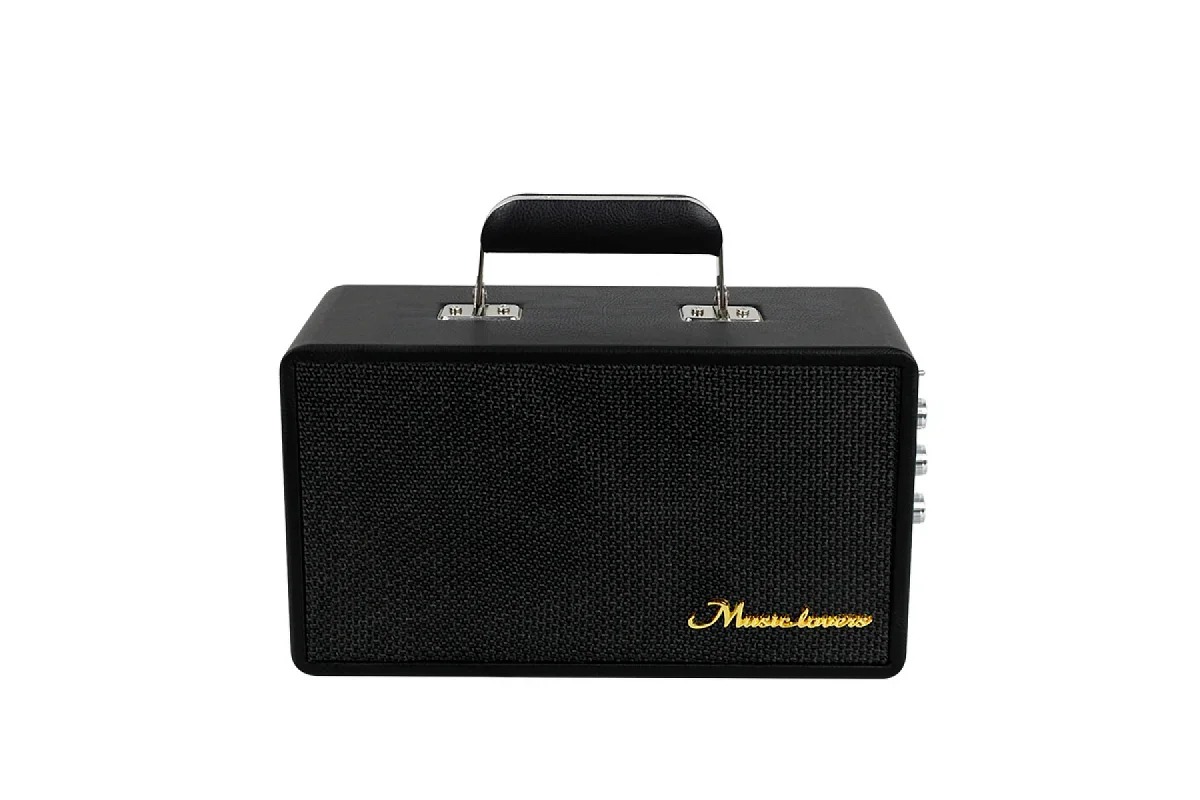 Портативная колонка Music Lovers BS-02 искусно совмещает винтажный стиль с передовыми технологиями. Ее корпус, изготовленный из МДФ и обтянутый полиуретановой кожей, выглядит стильно и дорого, обеспечивая надежность и долговечность. В составе аудиосистемы – высокочастотный динамик (ВЧ) с сопротивлением 6 Ом и мощностью 20 Вт, а также низкочастотный динамик (НЧ) с сопротивлением 4 Ом и мощностью 15 Вт. Такое сочетание обеспечивает кристально чистые высокие частоты и глубокие басы, создавая сбалансированное звучание для любых музыкальных стилей. Колонка оснащена Bluetooth 5.0 для стабильного беспроводного подключения к смартфонам, планшетам и другим устройствам. Для дополнительной гибкости предусмотрены USB-порт и AUX-вход: через USB можно воспроизводить музыку с флешки, а AUX позволяет подключать устройства проводным способом. На панели управления расположены переключатель питания, два индикатора состояния, регулятор громкости (также функция переключения на предыдущий трек), регулятор баса (кнопка паузы) и регулятор тонов (кнопка следующего трека). Встроенный аккумулятор емкостью 3600 мАч обеспечивает многочасовую автономную работу. Благодаря компактному весу (2.1 кг) и удобной ручке колонку легко носить с собой.