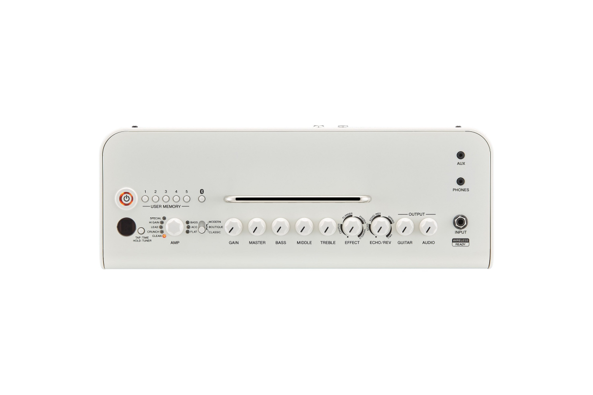Управление: AMP, GAIN, MASTER, BASS, MIDDLE, TREBLE, EFFECT, ECHO/REV, GUITAR OUTPUT, AUDIO OUTPUT, USER MEMORY Switch x 5, TAP/TUNER Switch