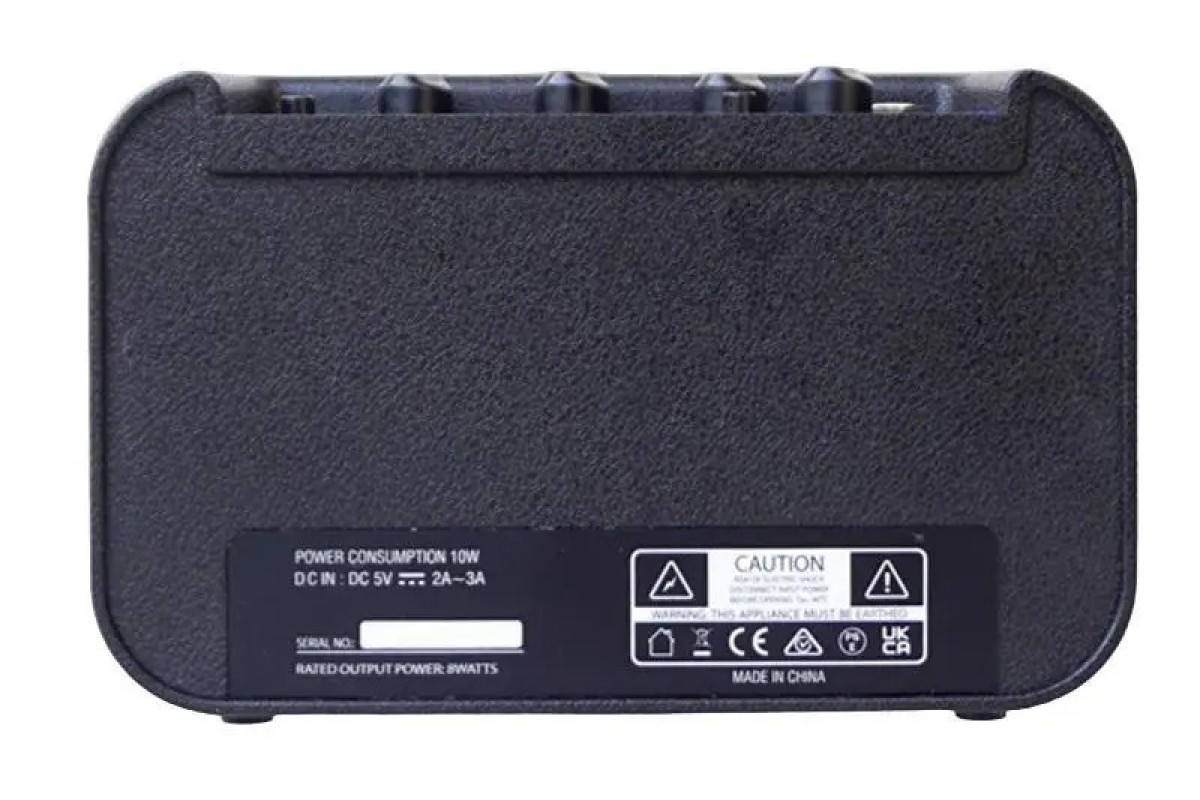 Устройство оснащено входом для бас-гитары (TRS 1/4") и AUX-входом (TRS 1/8"), что позволяет подключать смартфон или аудиоплеер для игры под аккомпанемент.