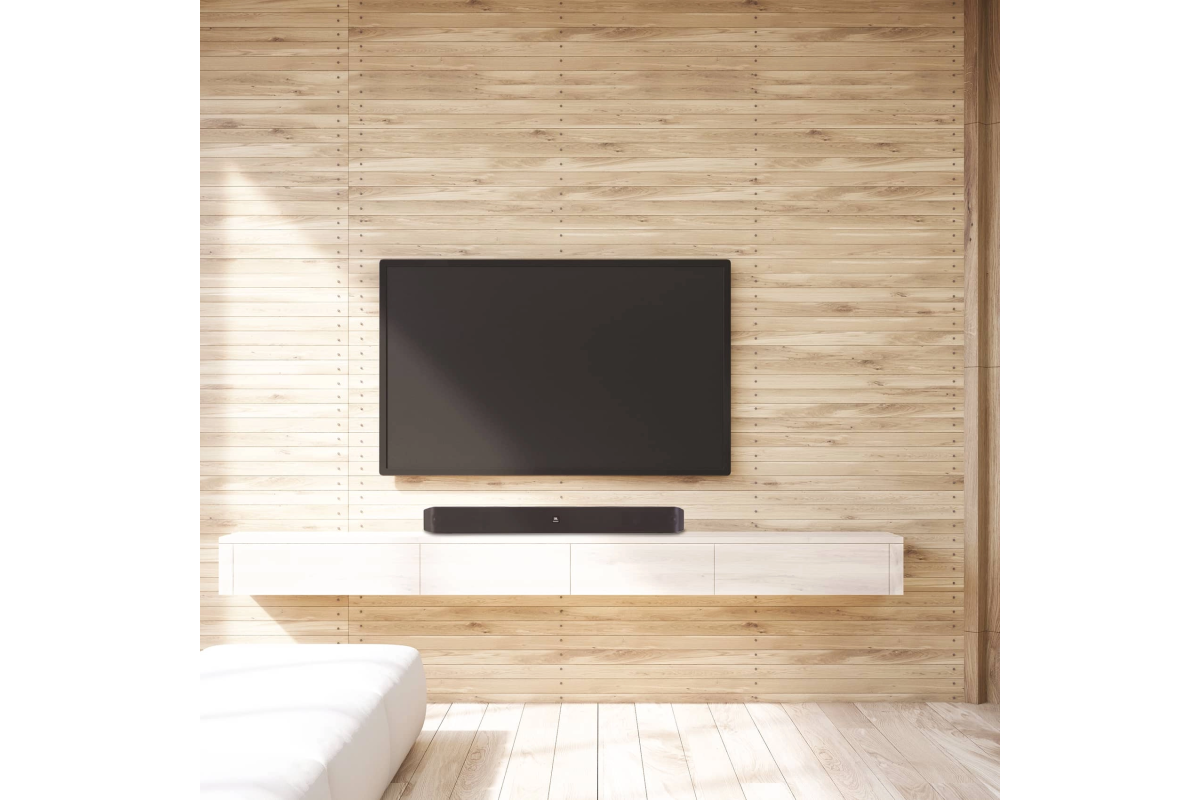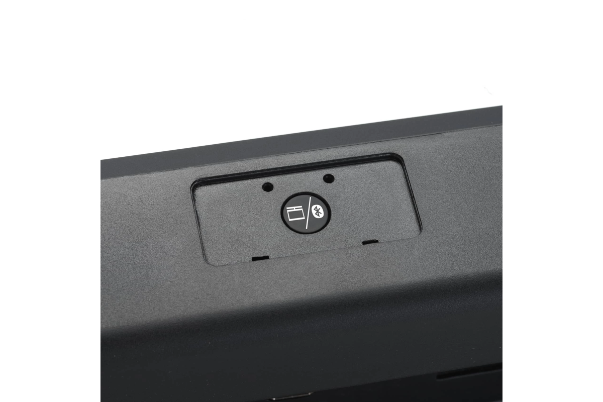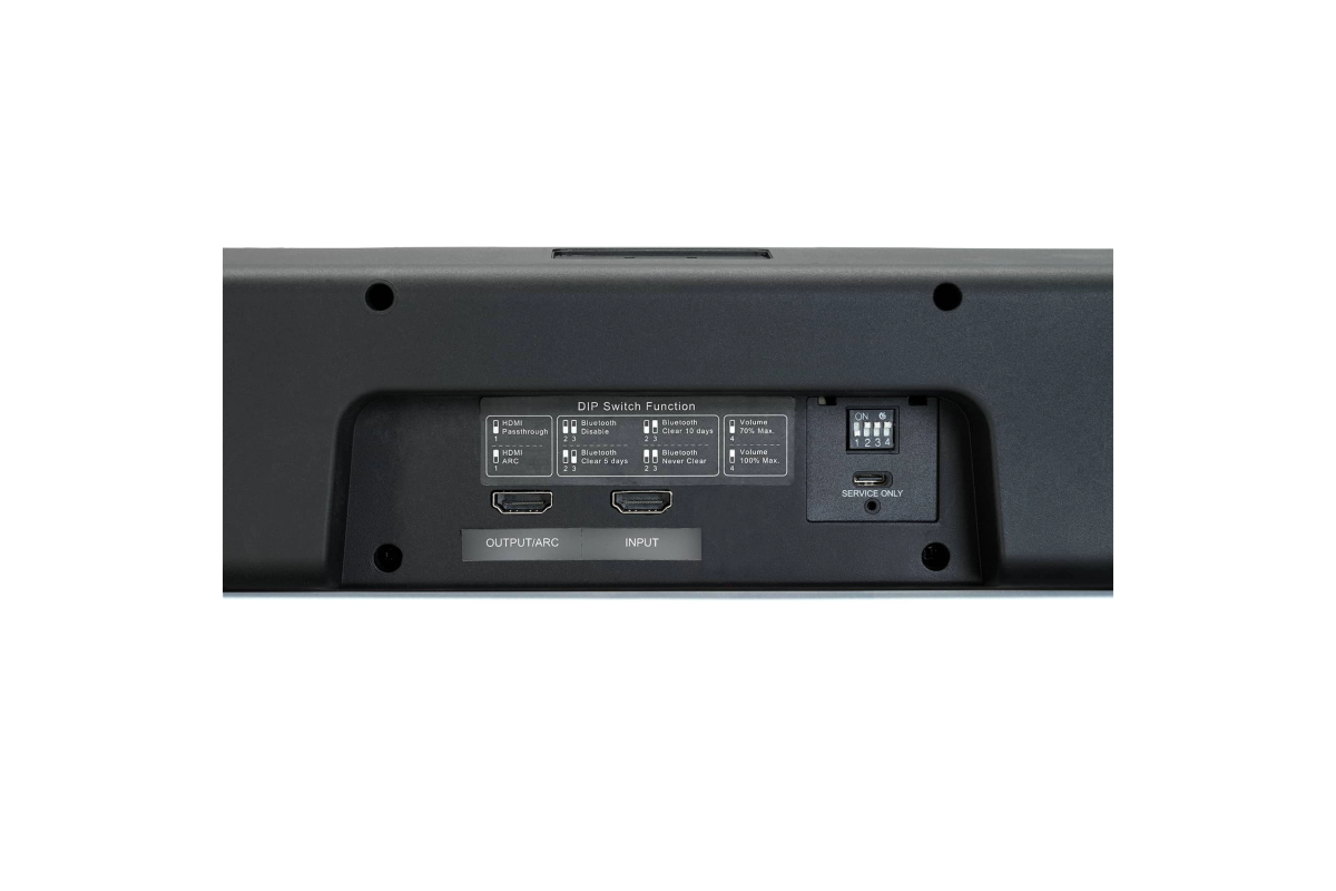 Саундбар оснащен цифровыми входами HDMI и Bluetooth 5.3 , упрощенным управлением и одной кнопкой переключения источников. Фронтальные динамики оптимизированы под человеческий голос для максимальной четкости. Дополнительно предусмотрен двухпозиционный лимитер , позволяющий ограничить громкость и не мешать соседям.