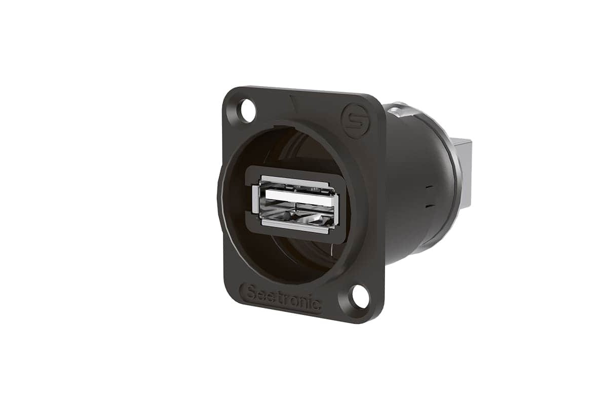 Этот разъем идеально подходит для создания аккуратных и профессиональных конфигураций, например, для вывода USB-соединений из речных стоек или настенных панелей, устраняя необходимость в свисающих кабелях. Он широко используется в аудио-, видео-, световом оборудовании и системах передачи данных.