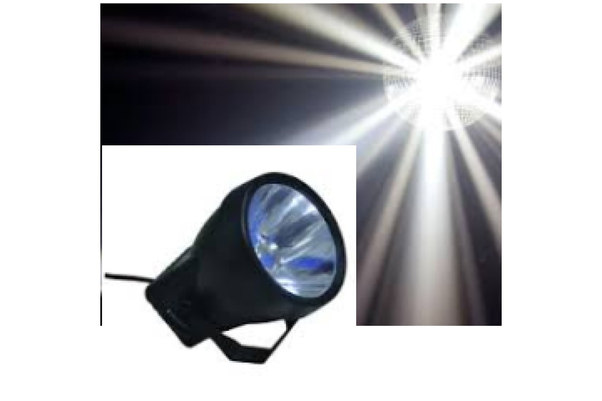 Прожектор випромінює біле світло, з вузьким кутом розкриття 12°, що дозволяє спрямовано висвітлювати дзеркальну кулю і створювати ефектні відблиски по всьому приміщенню.