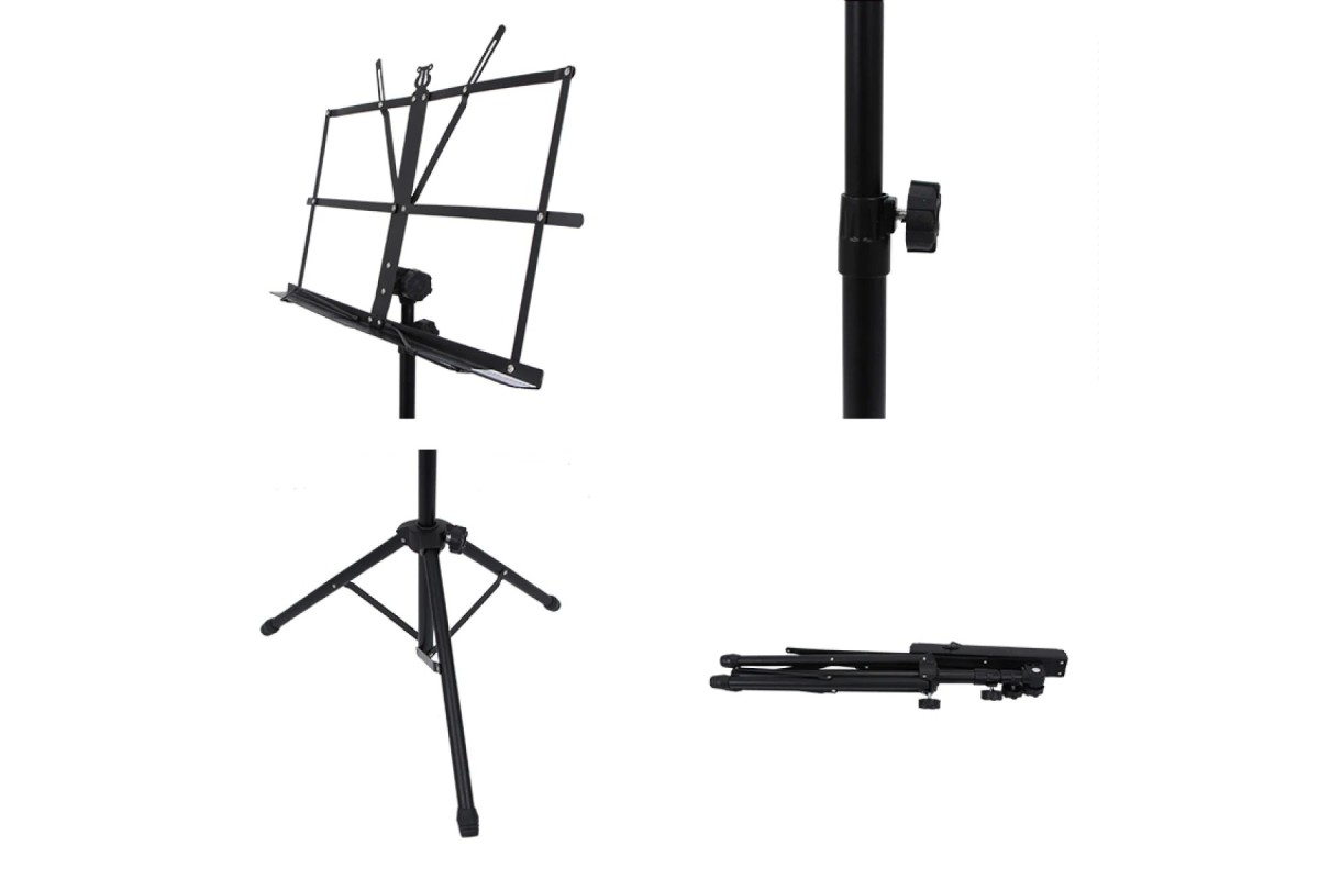 Alfabeto MS25B – стойкий и легкий металлический пюпитр, состоящий из компактного размера, позволяющий брать его с собой в дорогу. Высота регулируется от 74 до 142 см для простоты использования. Панель можно наклонить в любое положение (угол поворота 340°), а нотные тетради или литературу можно зафиксировать на месте с помощью двух резиновых зажимов. Пюпитр поставляется с нейлоновым водонепроницаемым чехлом для переноски.