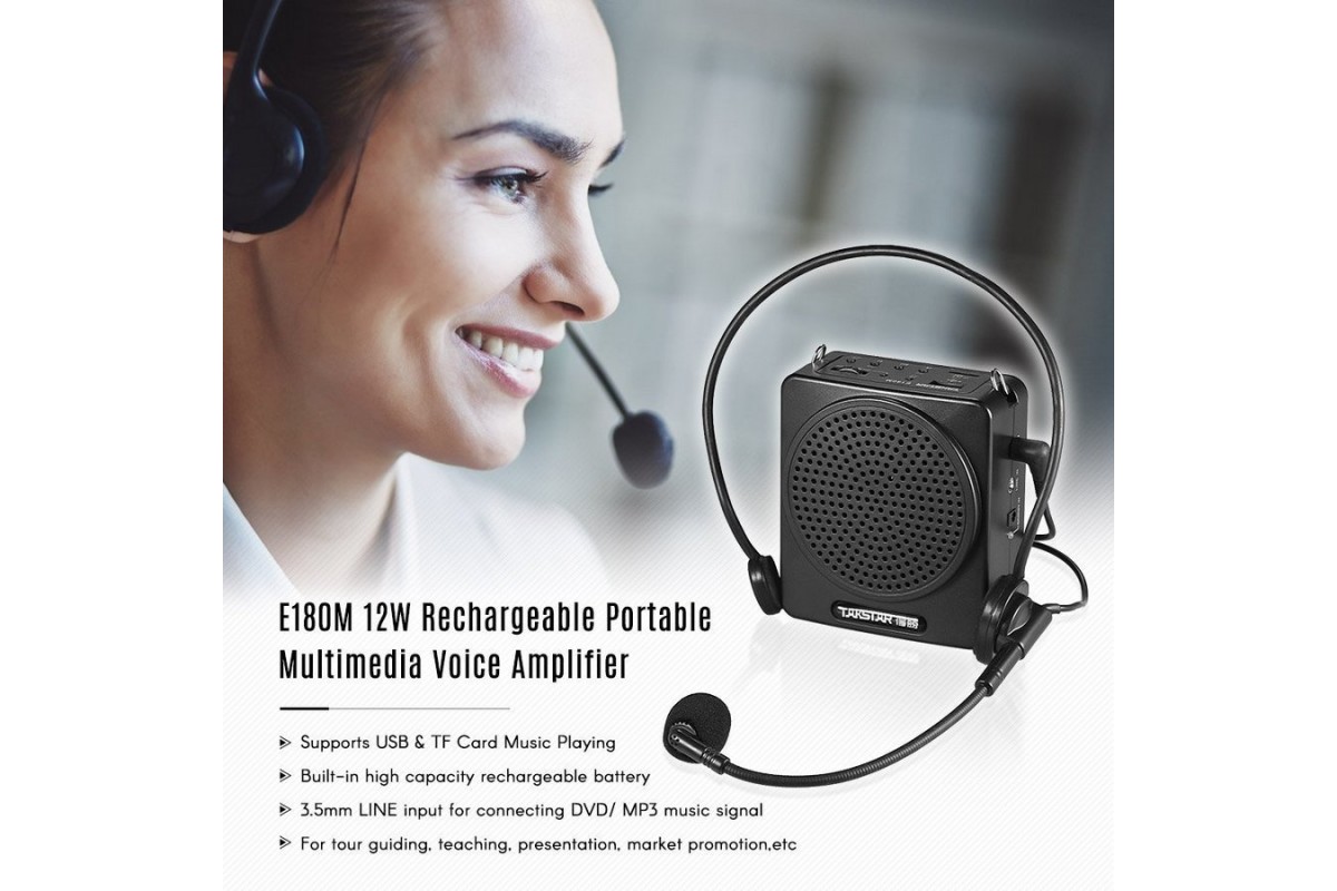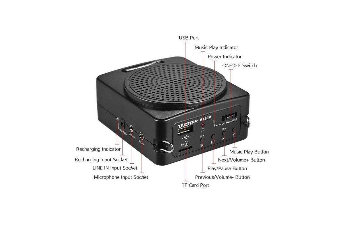 Портативное автономное устройство для усиления речи и трансляции записи. Литиево-ионный аккумулятор позволяет использовать устройство до 20 часов. Цифровой (класс D) усилитель с низким энергопотреблением, с высокой эффективностью, может выдавать до 12 Вт мощности.