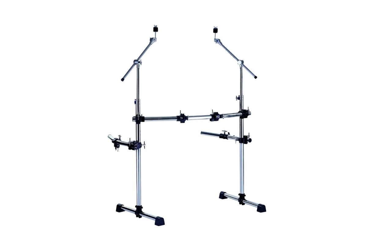 Особенность стойки Peace DR-18 в левой и правой боковых дугах, идеально подходящих для напольных томов и дополнительного монтажа, без необходимости устанавливать дополнительные опорные стойки. T-образные ножки обеспечивают устойчивое основание для всей системы, а стандартная изогнутая основная перекладина будет держать все в пределах досягаемости. В комплект входят два журавля для тарелок, которые крепятся к опорным стойкам, чтобы сохранить пространство в стойке для томов.