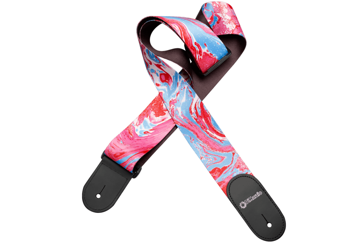 Ремень изготовлен из микрофибрового волокна с высококачественной печатью, а наконечники выполнены из натуральной стеганой кожи. Также в комплекте с ремнем идет специальный шнурок для использования с акустической гитарой.
