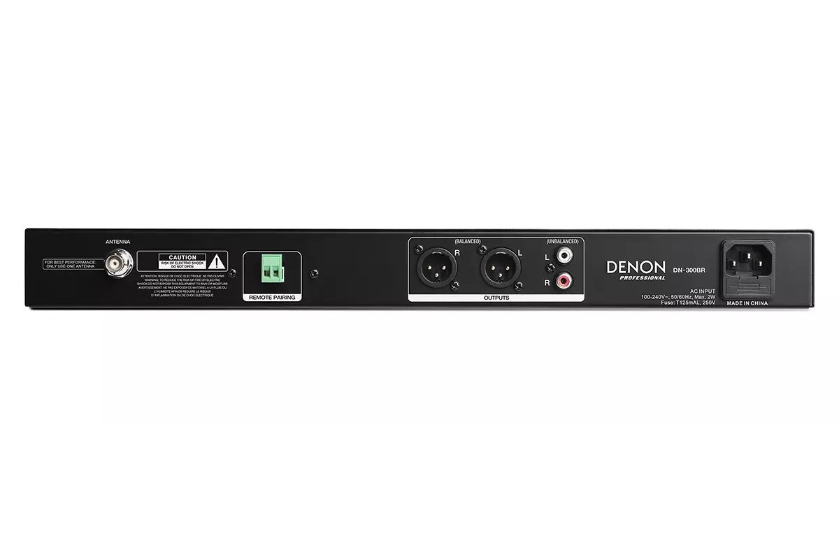 DN-300BR – это звуковой приемник 1RU Bluetooth® 4.0 с аудиовыходами профессионального класса, позволяющий пользователю добавить беспроводной стереозвук Bluetooth® в любую профессиональную аудиосистему. DN-300BR может хранить до (8) устройств в своей внутренней памяти. Спаренное устройство Bluetooth® позволяет передавать звук через балансные разъемы XLR и небалансные разъемы RCA в микшер, громкоговоритель с питанием или в систему усиления. Включенная антенна Bluetooth® для удобства может быть установлена на переднюю или заднюю панель и обеспечивает прием до 100 футов (33 м). Идеально подходит для розничной торговли, спортивных баров, учебных заведений и гостиниц/конференций. Дополнительная функция – соединение Euroblock на задней панели устройства кнопки дистанционного сообщения. Это удобно, когда DN-300BR трудно доступен. Фронтальная ручка выходного уровня и светодиоды спаривания/состояния для удобства использования.