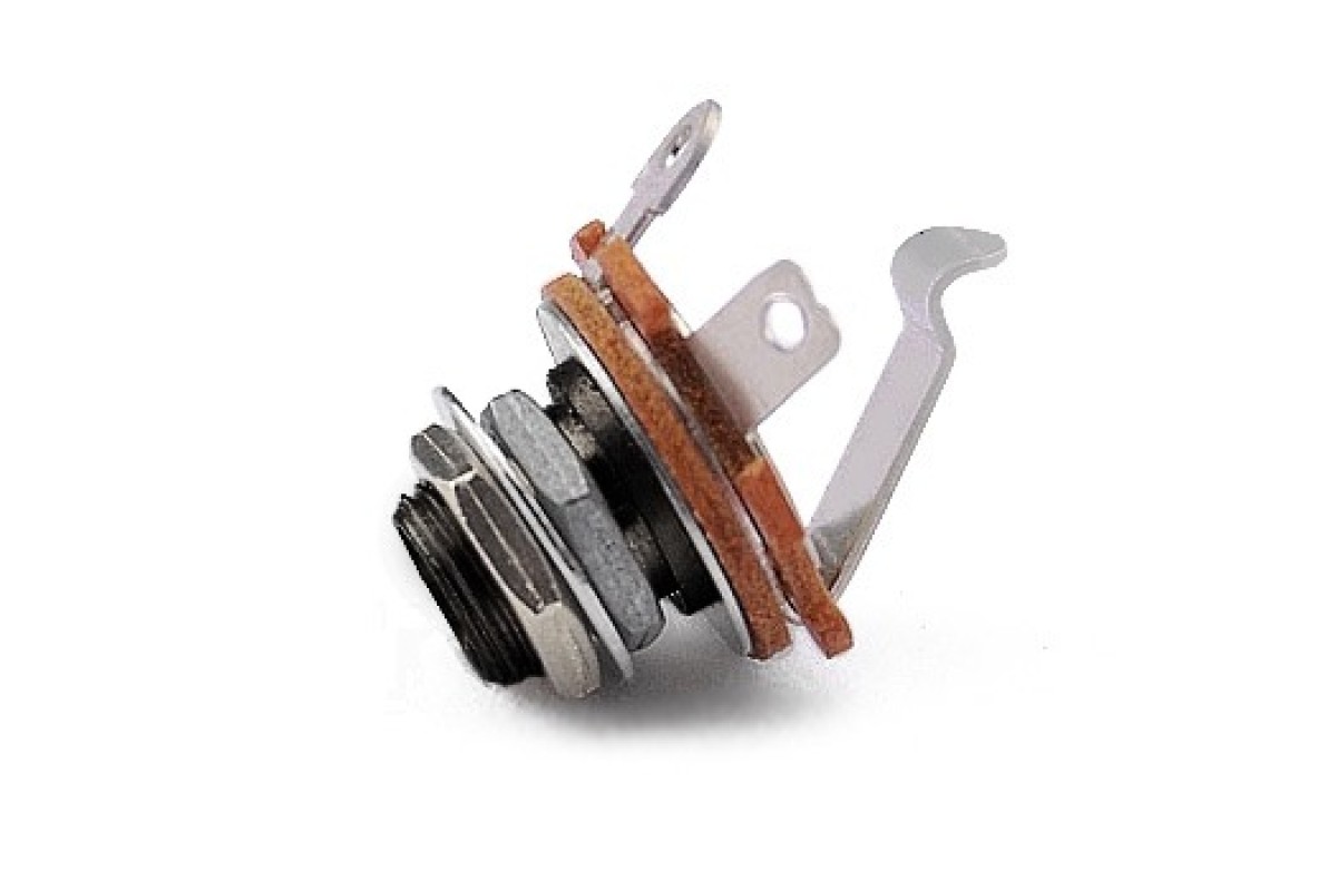 PAXPHIL JC11 — це 2-контактний роз'єм для підключення електрогітари. Він призначений для підключення до підсилювача або інших зовнішніх пристроїв через стандартний 1/4" Jack. Роз'єм має різьбове кріплення, що дозволяє надійно закріпити його в планці гітари, запобігаючи небажаному руху і забезпечуючи стабільний контакт.