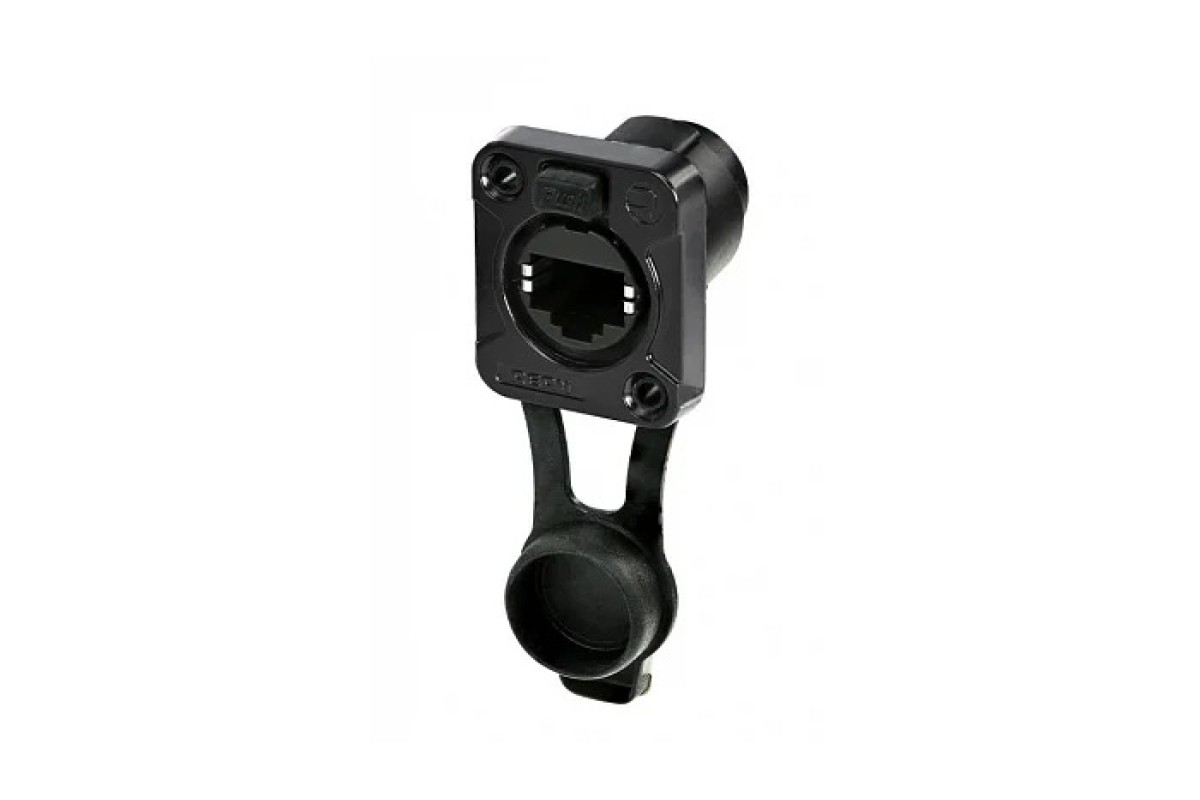 Панельный проходной разъем, фланец типа D. Cat. 5E., позолоченными контактами, черным корпусом и классом защиты IP65 для оптимальной защиты вашего устройства или оборудования от попадания воды.