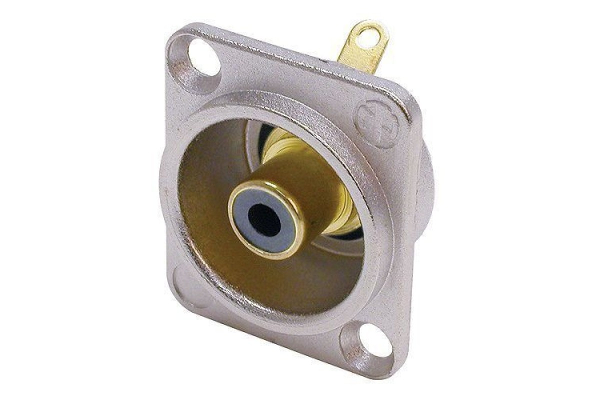 NEUTRIK NF2D-0 - Панельный разъем RCA, <гнездо/мама>, фланец D-типа, металлический никелированный корпус, контакты покрытия – золото, под пайку.
