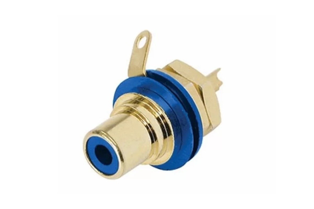 REAN NYS367-9 Панельный разъем RCA, гнездо (мама), крепление на панель – гайка, позолоченный металлический корпус, контакты покрытия – золото, под пайку.