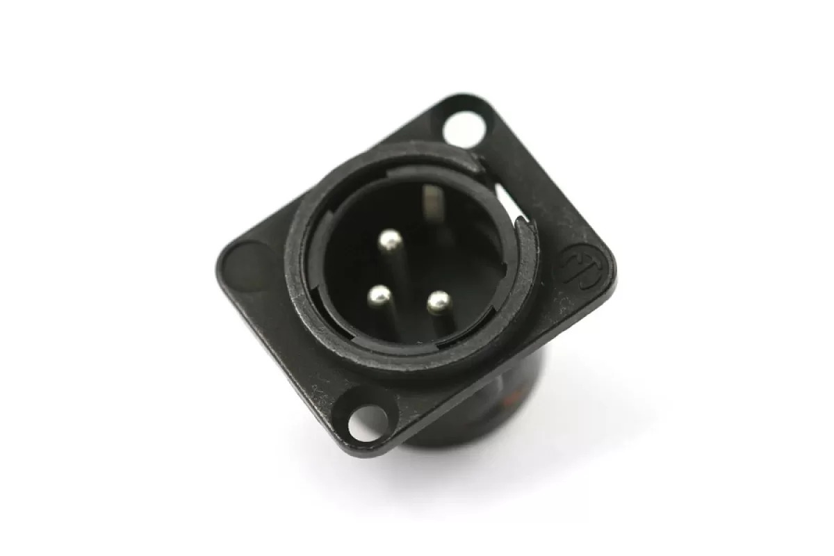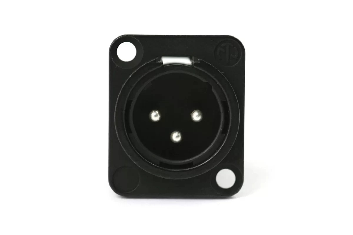 Neutrik NC3MD-L-BAG-1 – это панельный 3-контактный разъем XLR D-типа. Этот типоразмер наиболее распространен, и такие разъемы могут быть установлены как снаружи, так и изнутри приборной панели. Они имеют кольцевидный фланец на передней части, диаметр которого равен диаметру задней контактной части разъема.