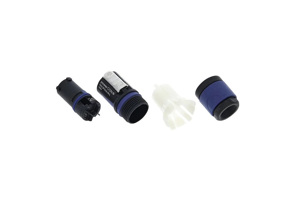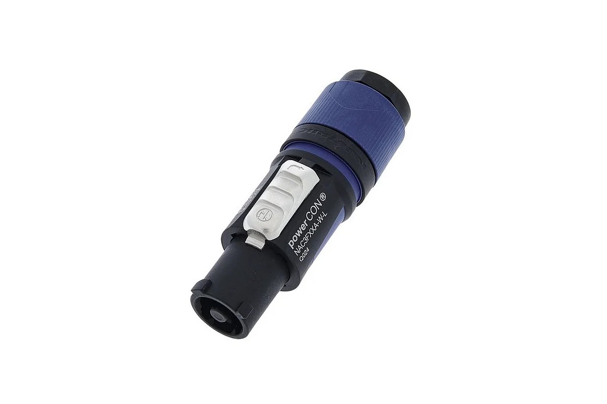 Разъем powerCON FXXA/FXXB является однофазным (3 проводника) блокированным силовым разъемом с возможностью разрыва цепи при соединении с розетками серии powerCON XX.