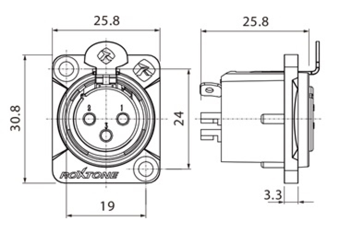 Разъем: 3-контактный панельный разъем XLR female (мама), черная электрофоретическая краска