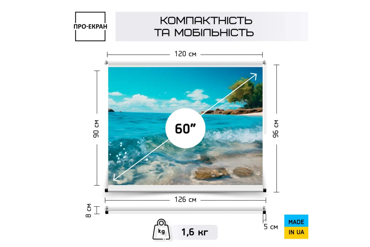 Рулонный экран для проектора с диагональю 60 дюймов, 120х90 см (4:3)