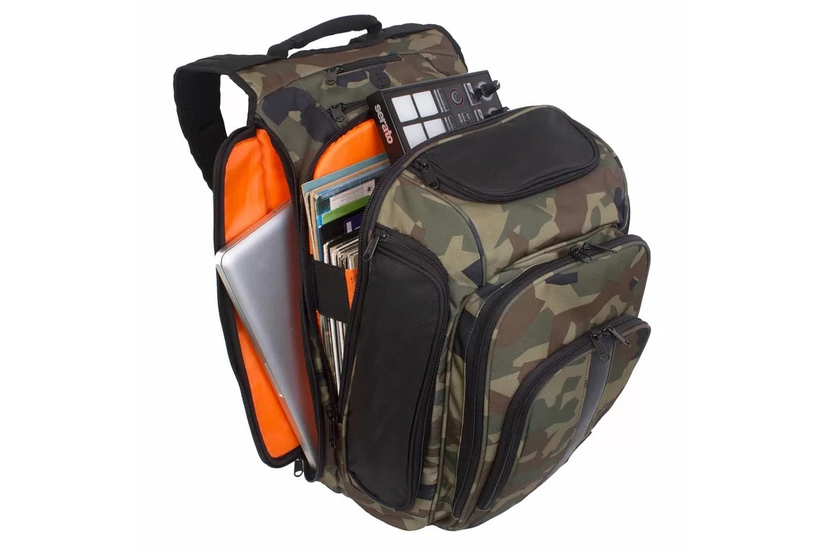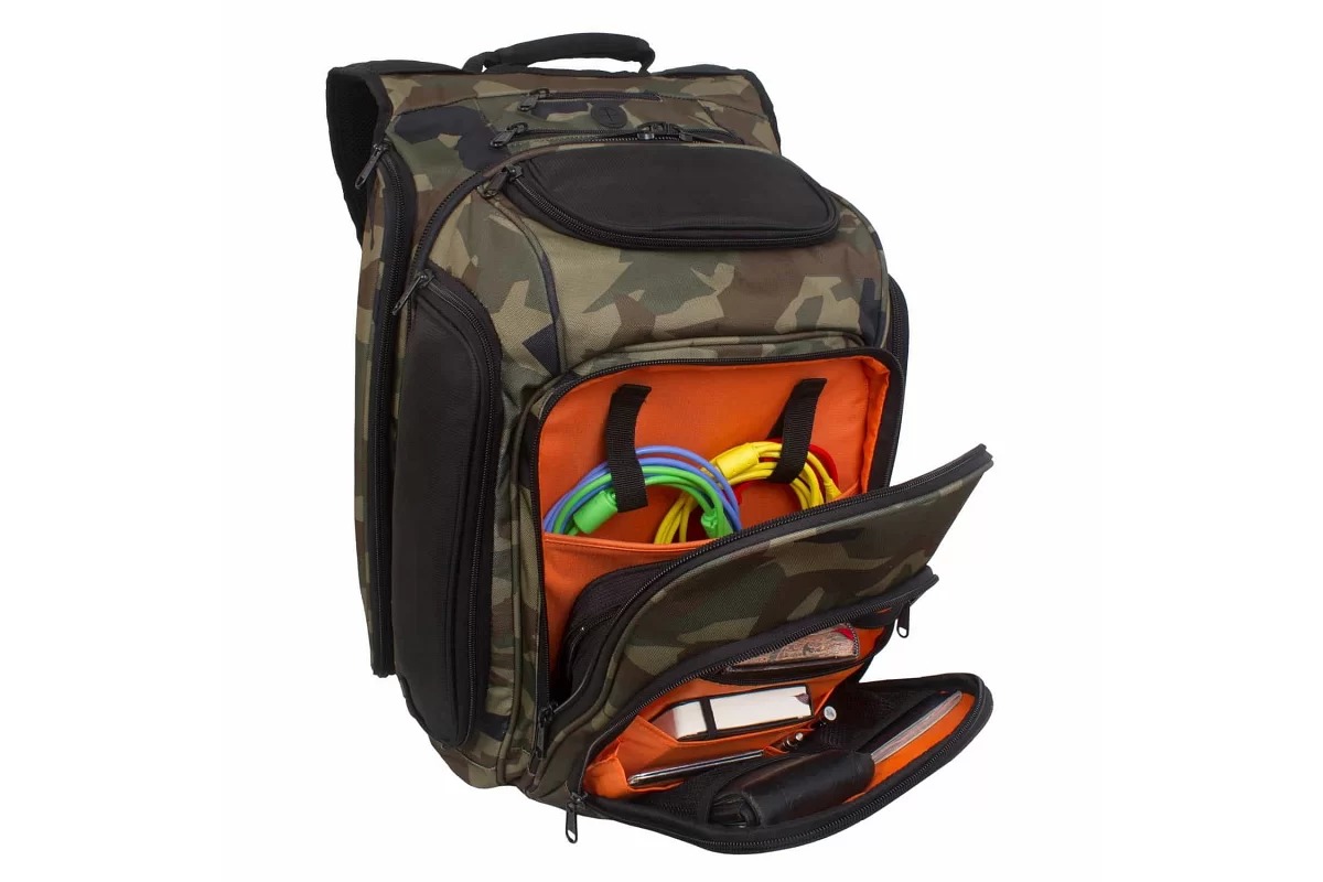 Рюкзак Ultimate DIGI специально разработан для ноутбука диджея. Изготовлен из высококачественного водонепроницаемого нейлона, он содержит продуманное боковое отделение для ноутбука с диагональю до 16 дюймов без необходимости проходить сквозь основной корпус сумки. В основное отделение сумки можно поместить дополнительный ноутбук, а также MIDI-контроллер Native Instruments MASCHINE MK2 размера. Есть съемный чехол для интерфейса, а поверх сумки мягкий карман для наушников с быстрым доступом. Есть 5 отделений на молнии для надежного хранения USB-накопителей, SD-карт, проводов и кабелей, адаптеров переменного тока, компактных камер, MP3-плееров и других аксессуаров.
