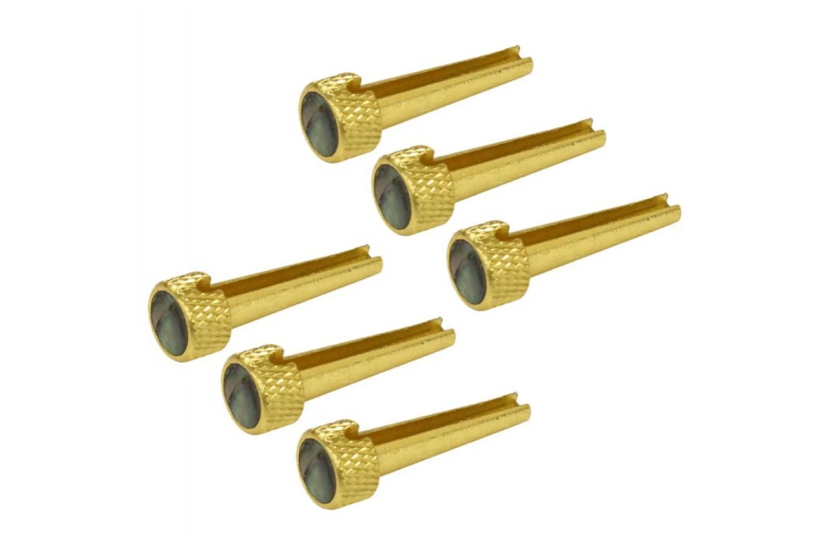 Набор бронзовых шпилек (6 штук в комплекте) для бриджей акустических гитар. Цвет: натуральный (бронза) + инкрустация из жемчуга.