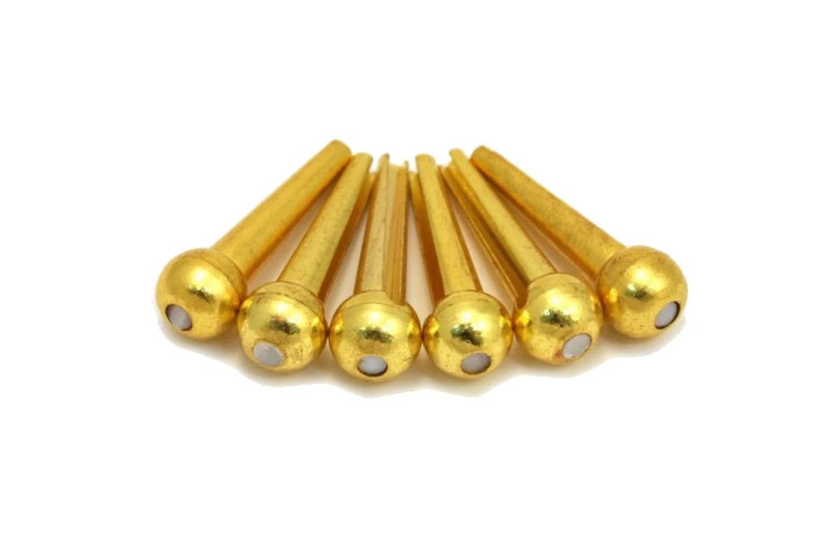 Набор бронзовых шпилек (6 штук в комплекте) для бриджей акустических гитар. Слоеная форма.