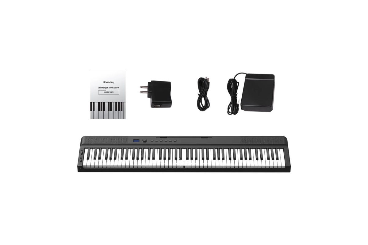 Harmony 88FW – современное сложное цифровое пианино с 88 полноразмерными полувзвешенными клавишами , полностью имитирующими классическое фортепиано. Благодаря легкой портативной конструкции, встроенному аккумулятору и удобной транспортировочной сумке, этот инструмент станет идеальным решением как для занятий дома, так и для выступлений и обучения.