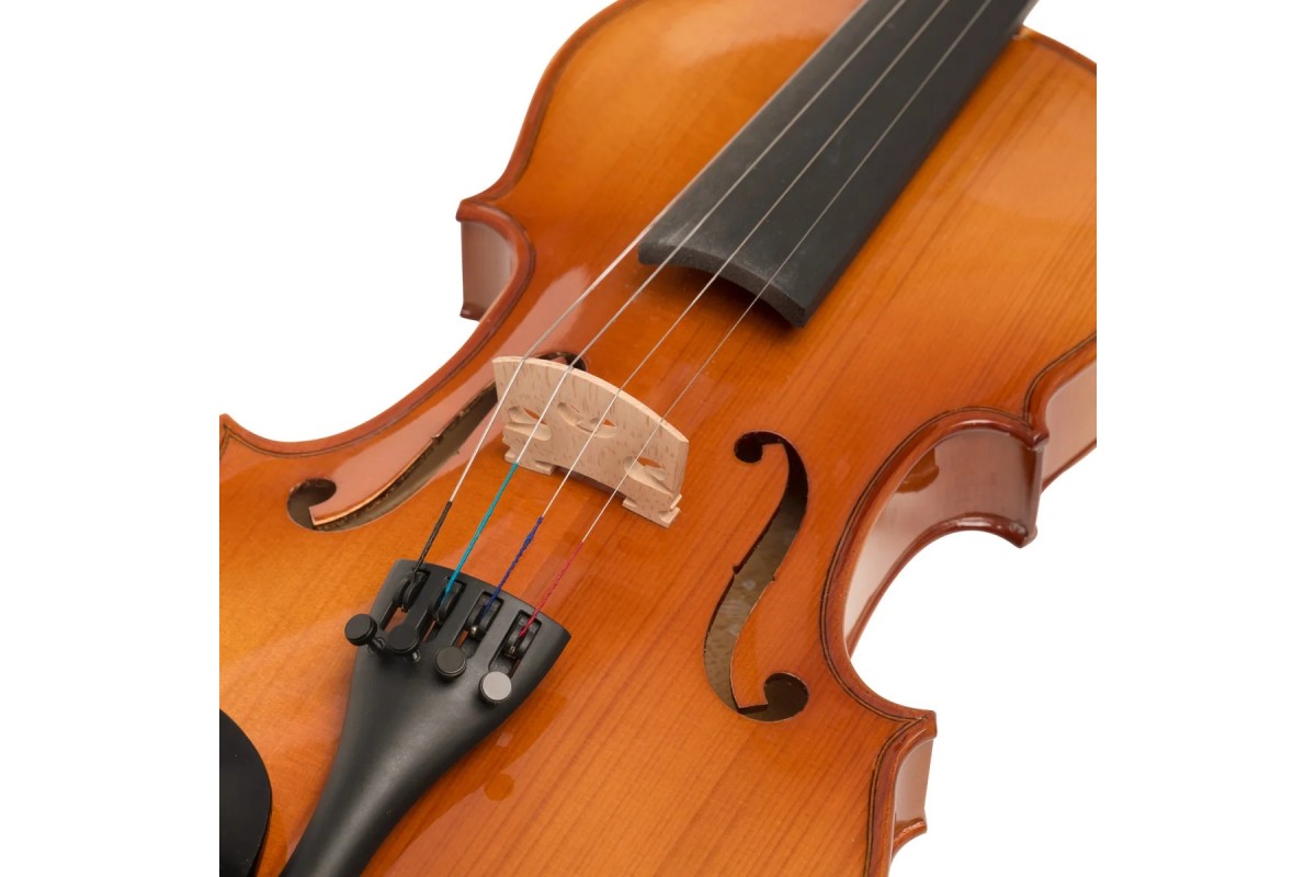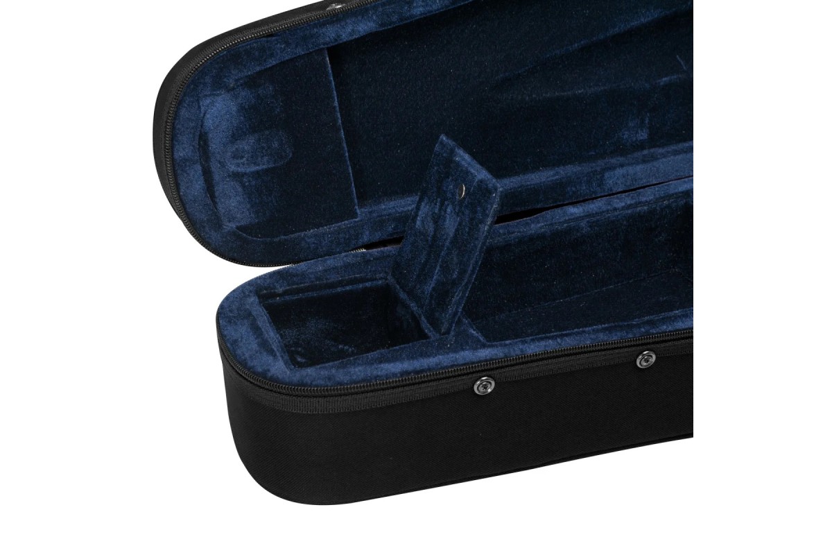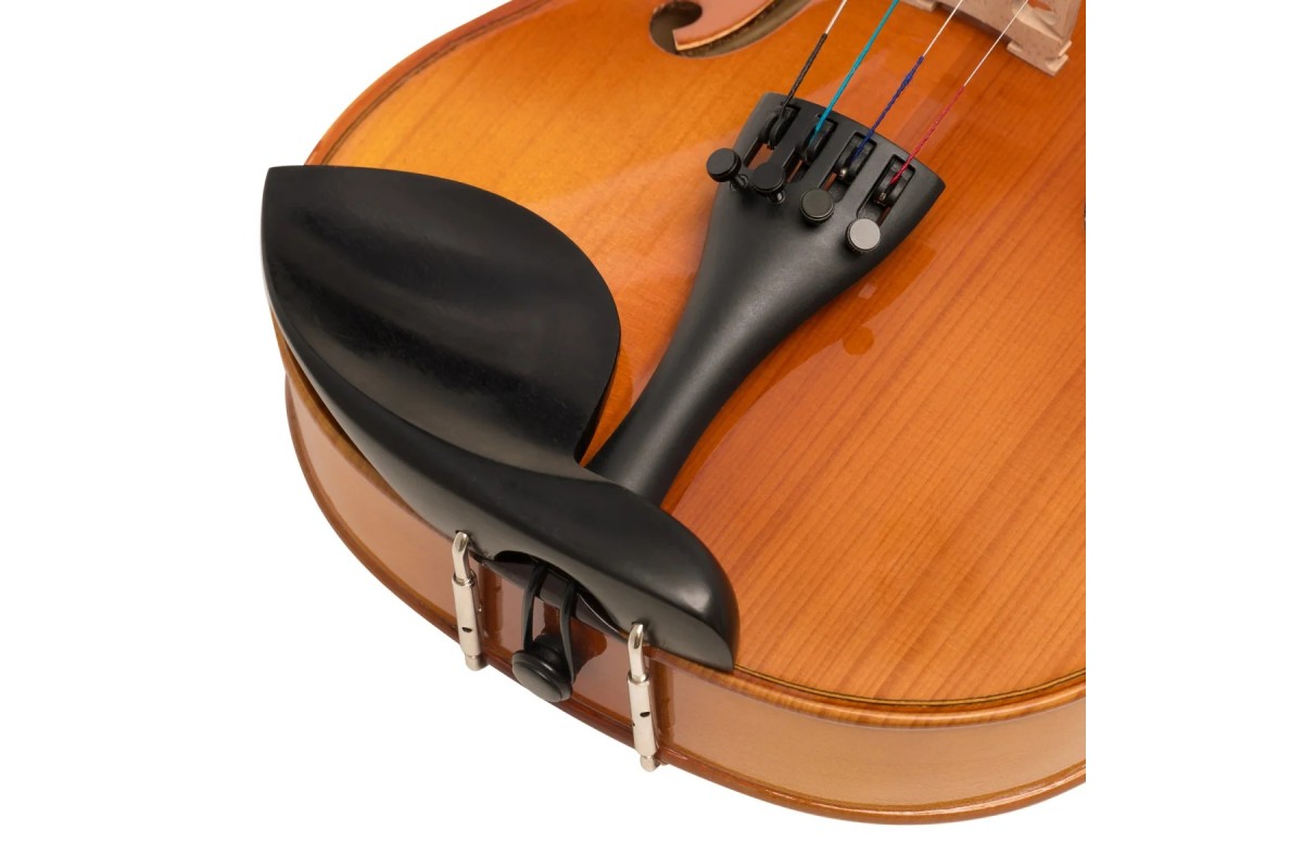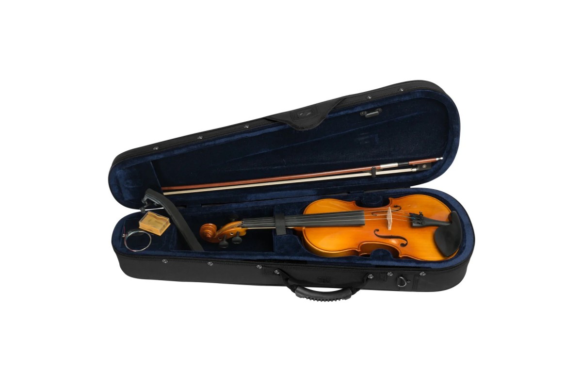 В расширенный комплект входит качественный смычок с черным грифом и перламутровой инкрустацией. Также в наборе запасные стальные струны и подставка для плеча. Поставляемая канифоль для смычка хранится в пластиковом боксе с крышкой, что позволяет легко и равномерно наносить ее. Формованный футляр с усиленной ручкой и функцией рюкзака идеально защищает скрипку. Канифоль и запасные струны можно хранить внутри футляра, а в наружном кармане для аксессуаров поместится тюнер. В дополнительном наружном отделении легко уместятся ноты формата DIN A4. Комплект Cascha предлагает отличную основу для обучения игре на скрипке как подросткам, так и взрослым.
