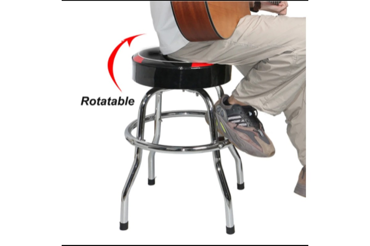 Стул, который подойдет для многих сфер: для игры на гитаре и других музыкальных инструментов и даже для приема коктейлей в баре. Также подойдет как стул под барную стойку или квартиру. Обладает круглым сиденьем длиной 35 см, шириной 7,5 см. Главная особенность – возможность поворачивать сиденье на 360 градусов и наполнитель из материала, который быстро и точно повторяет контуры тела. В комплект входят металлические прокладки, которыми можно воспользоваться при неровной поверхности. Длина ножек: 50,5см.