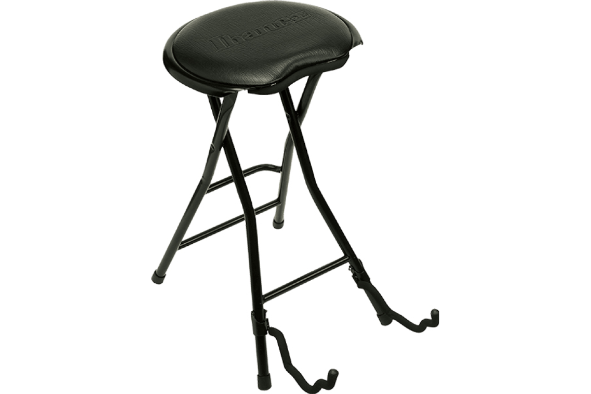 IBANEZ IMC50FS – это стул для гитариста со сложной подставкой, обладает мягким сиденьем с логотипом бренда. Представлен в черном цвете и имеет высоту 650 мм.