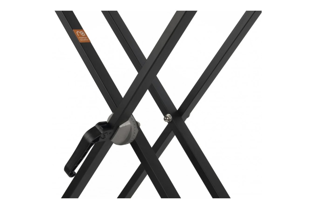 Maximum Acoustics CRX2 - стойка для клавишных инструментов, это максимально надежное решение для гастролирующих клавиш. Изготовлена из прочного основания с усиленным двойным каркасом. Система фиксации типа "крокодил" от 0 до 180 градусов. Есть возможность подсоединения второго яруса для ноутбука или миниклавиш. Имеются резиновые фиксаторы на основаниях стойки. Хорошо проявляется в прокатных компаниях, с агрессивным использованием оборудования ежедневно.