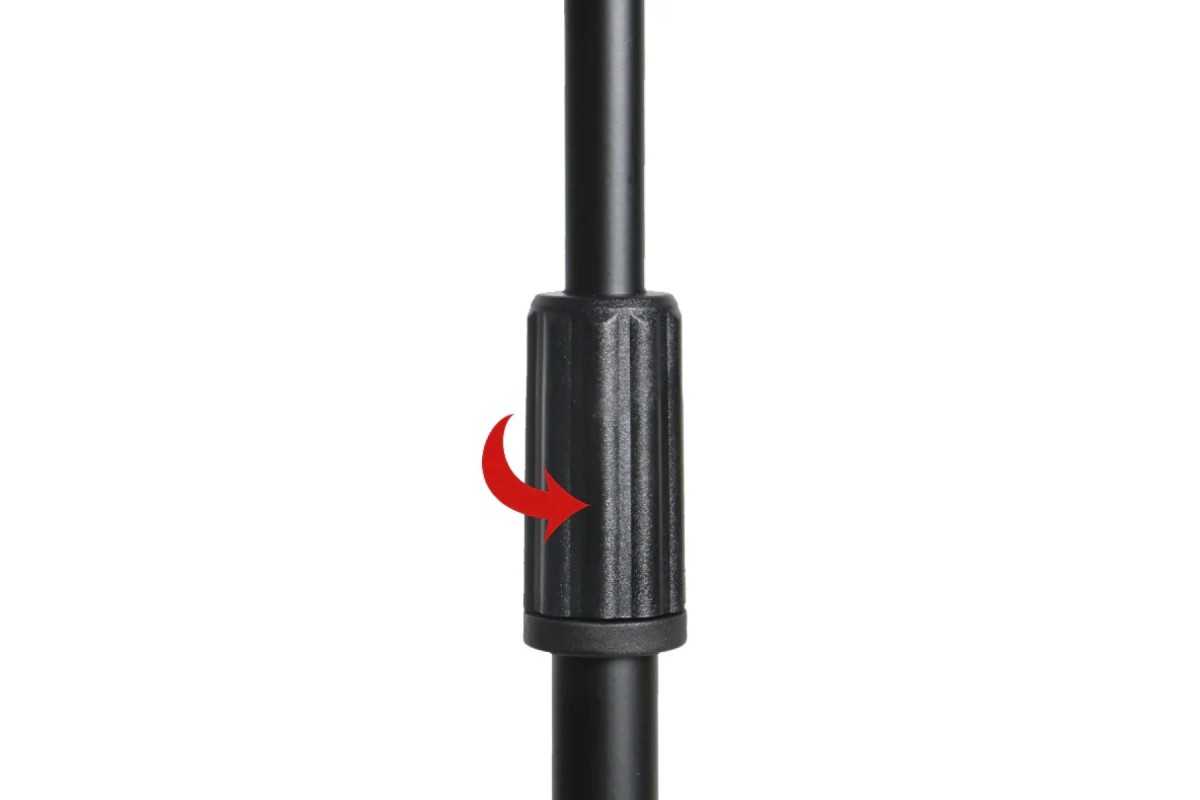 Основа треноги и крепления для «стрелы» выполнены из прочного пластика, что обеспечивает долговечность и надежную фиксацию даже при агрессивной эксплуатации – идеально для прокатных компаний. Тренога оснащена резиновыми накладками для обеспечения надежной опоры и защиты от скольжения. Для большего удобства на стойке предусмотрена прищепка для фиксации микрофонного кабеля.