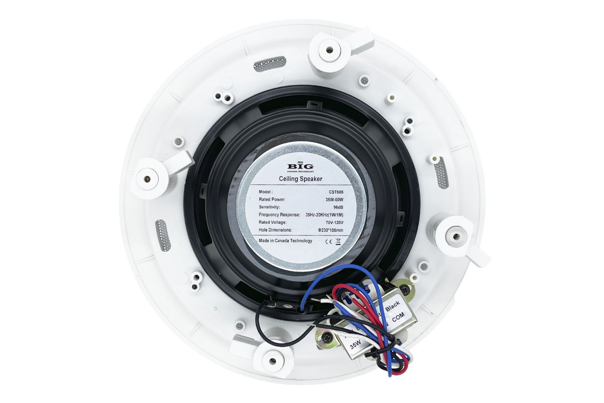 Стельовий гучномовець BIG CST605 — це потужна двосмугова акустична система, розроблена для якісного озвучення приміщень будь-якого типу — від житлових до комерційних, торгових і офісних. Завдяки ВЧ твітеру Mylar 30 мм і НЧ динаміку 165 мм, система відтворює чисте, насичене звучання з глибокими басами та виразними високими частотами. Вологостійкий корпус, поліпропіленовий дифузор і бутиловий підвіс забезпечують довговічність, а трансформатор 100 В дозволяє використовувати гучномовець у фонтових і оповісних системах озвучення.