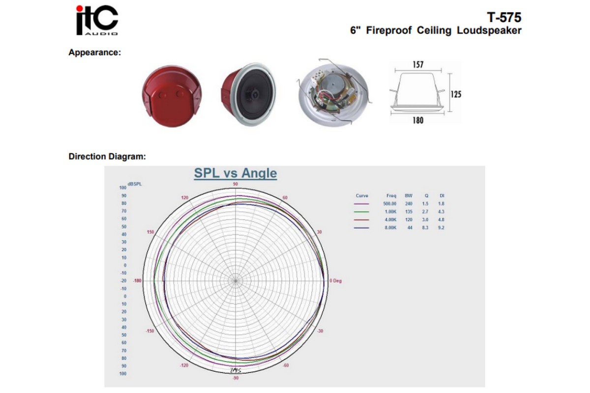 ITC T-575 Широкополосный потолочный громкоговоритель с огнестойким корпусом