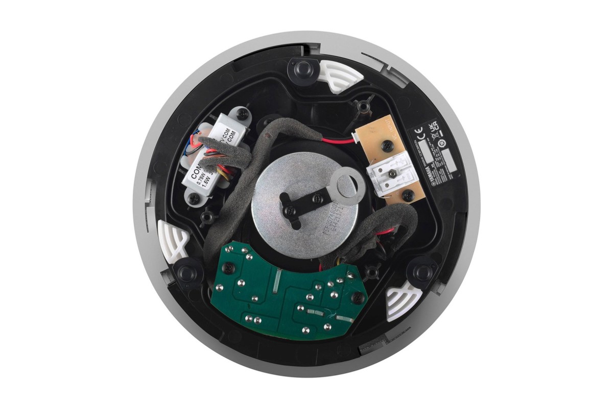 Низькопрофільна конструкція дозволяє встановлювати гучномовець навіть у стелях з обмеженим простором, а елегантний дизайн гармонійно поєднується з будь-яким інтер’єром. Сітка на магнітних замках забезпечує швидкий доступ для обслуговування, а вбудований текстильний чохол підвищує безпеку монтажу.