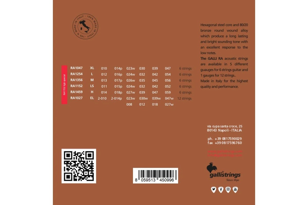 Струны Galli ® - набор из 6 струн LIGHT SPECIAL, натяжение 80/20, бронзовая обмотка .011 – .052