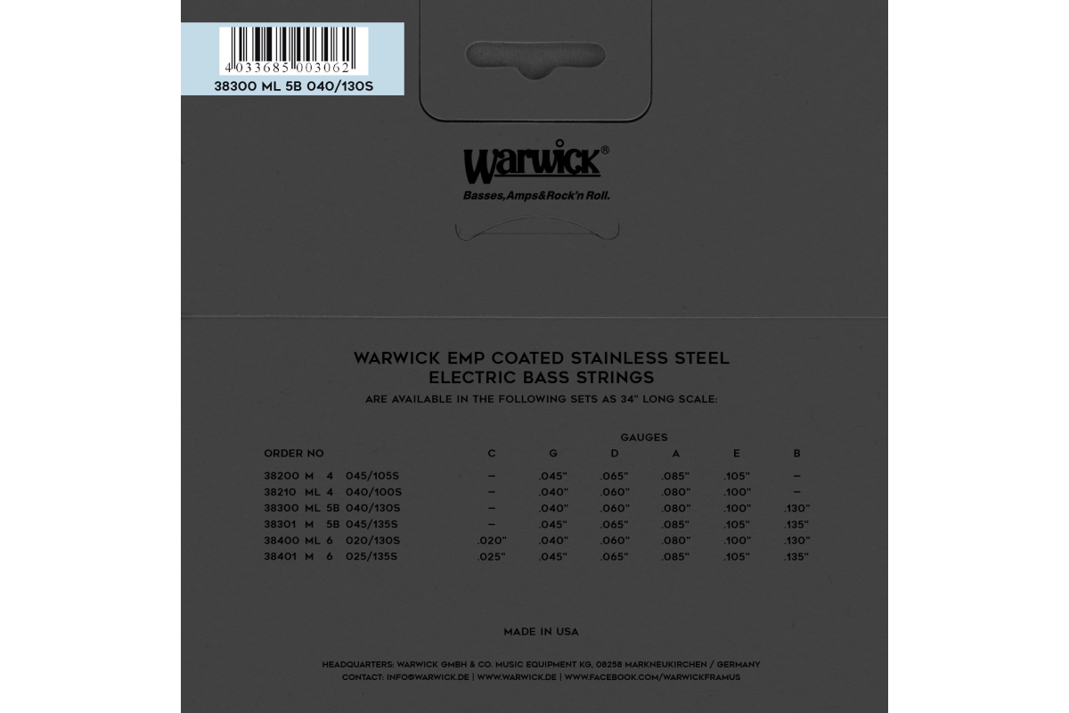 Струны для бас-гитары Warwick 38300 EMP Medium Light 5-String (40-130) – профессиональный набор из пяти струн с защитным покрытием EMP (Enhanced Molecular Protection) , что обеспечивает устойчивость к коррозии, окислению и увеличивает срок службы в несколько раз.