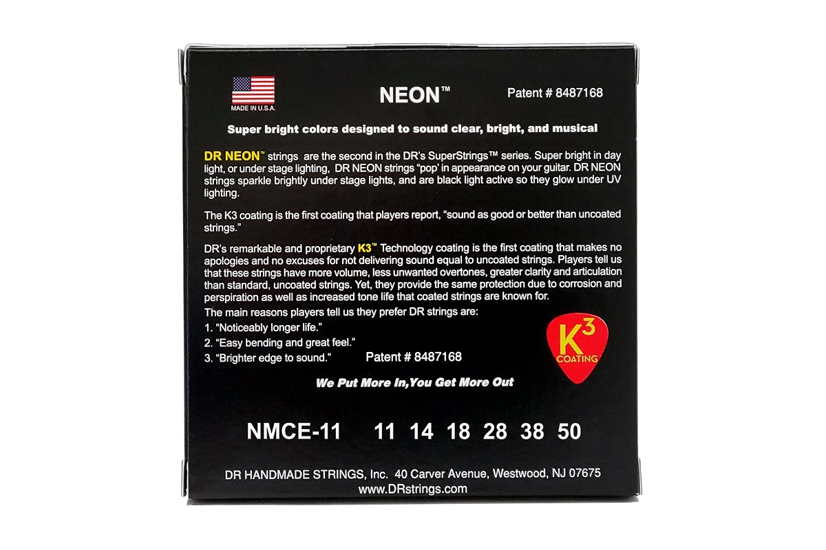 Струны DR Strings NEON Multi-Color Electric – Heavy (11-50) серии HI-DEF NEON™ сочетают в себе профессиональное звучание и яркую сценическую эстетику. Благодаря неоновому люминесцентному покрытию K3™ эти струны светятся под ультрафиолетовым освещением, делая выступ на сцене более эффектным и заметным.