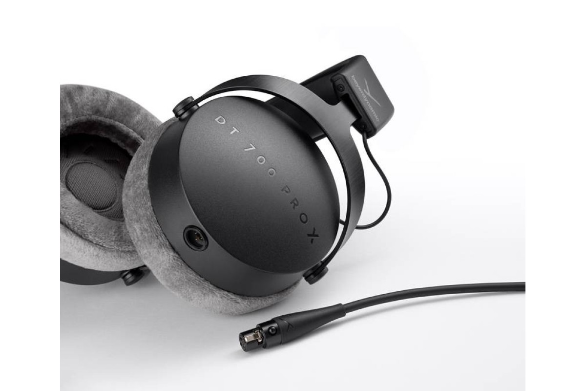Beyerdynamic DT 700 Pro X – полноразмерные наушники закрытого типа для записи и мониторинга. Совмещают в себе высокий комфорт с эффективной пассивной изоляцией. Прочная конструкция изголовья из пружинной стали. Оснащены новыми излучателями STELLAR.45 с неодимовыми кольцевыми магнитами. Макс. SPL: 114 дБ; частотная характеристика: 5 Гц – 40 кГц; импеданс: 48 Ом; амбушюры: велюровые; вес: 350 г. Съемные кабели mini-XLR на 1.8м и 3м, адаптер 1/4 дюйма. Произведено в Германии.