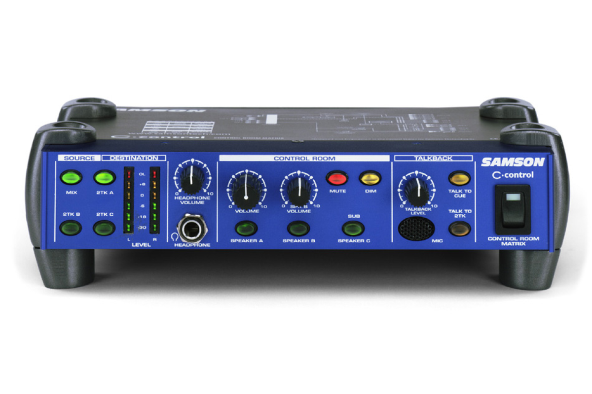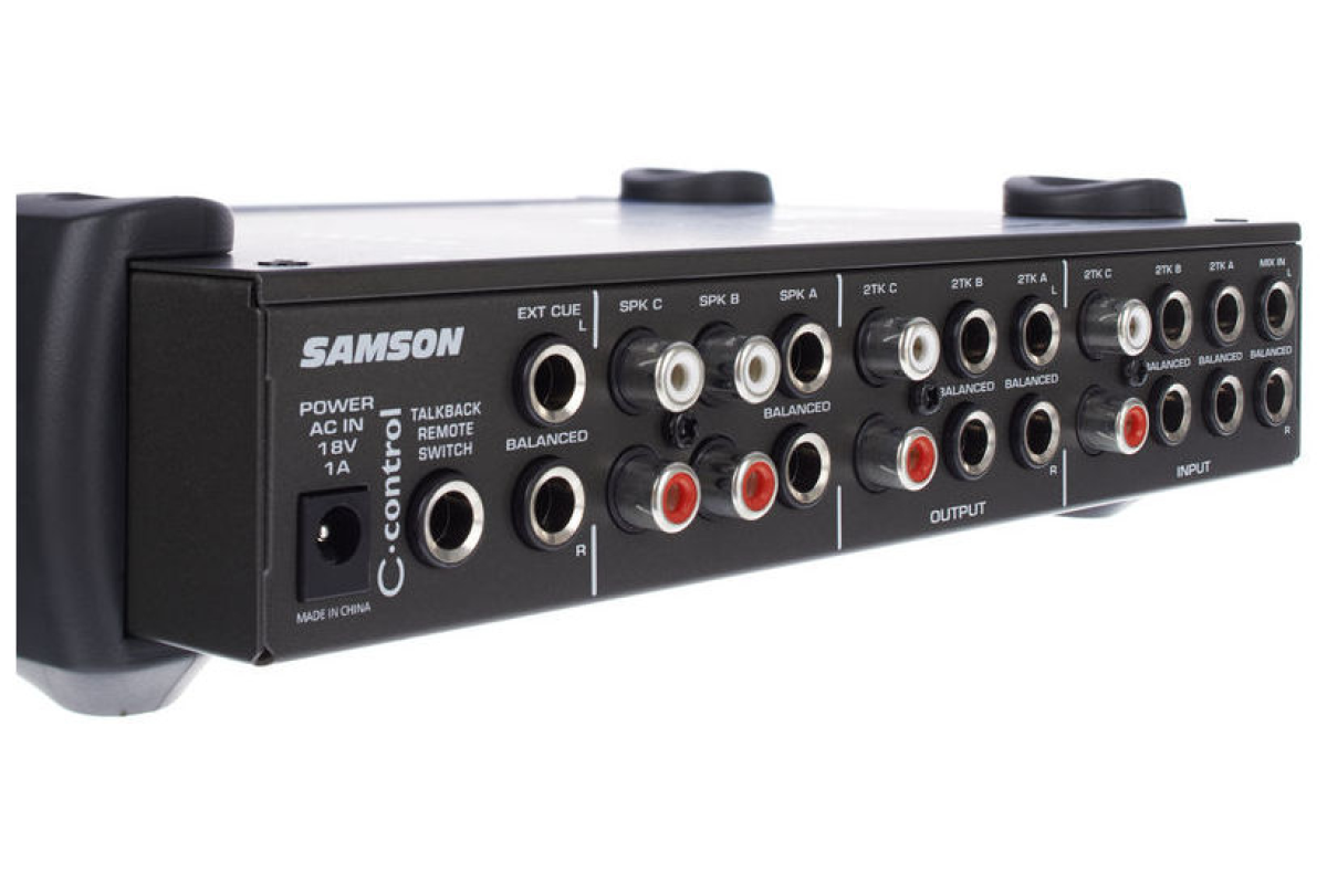 Samson C-Control обеспечивает возможность коммутации от одного до четырех источников звука (с возможностью каскадного включения), -которой комбинации, наобщую шину для трех пар активных мониторов, каждую из которых можно подключать/отключать независимо от остальных.