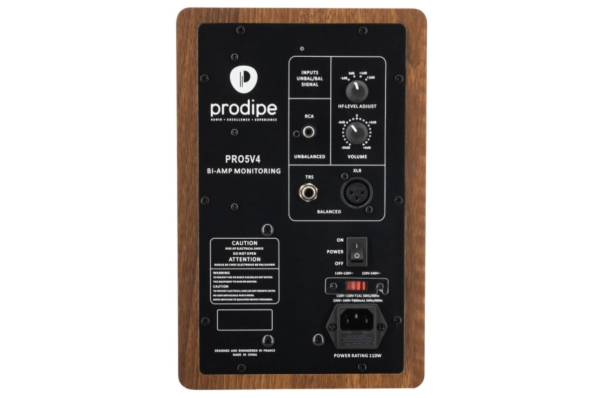 Особое внимание было уделено нейтральности и гармоничному балансу звука, что делает Prodipe Pro 5 V4 идеальным выбором для профессионального студийного использования. Активная фильтрация обеспечивает равное распределение частот без искажений, что способствует естественному звучанию. Для подключения на задней панели имеются сбалансированные XLR и TRS 1/4” входы, а также несбалансированный RCA, а также регулятор высоких частот и ручка контроля громкости.