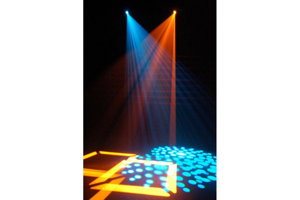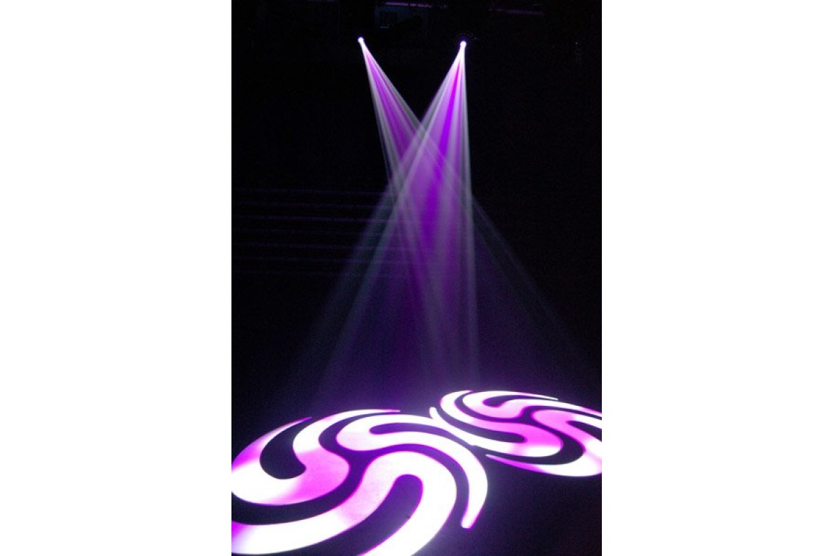 Вращающийся гобо: 2 стеклянных гобо + 5 (сменных) металл, вращение.