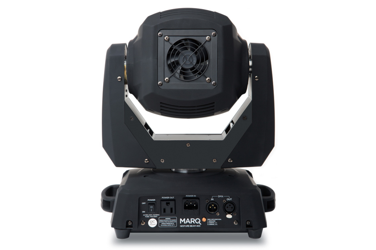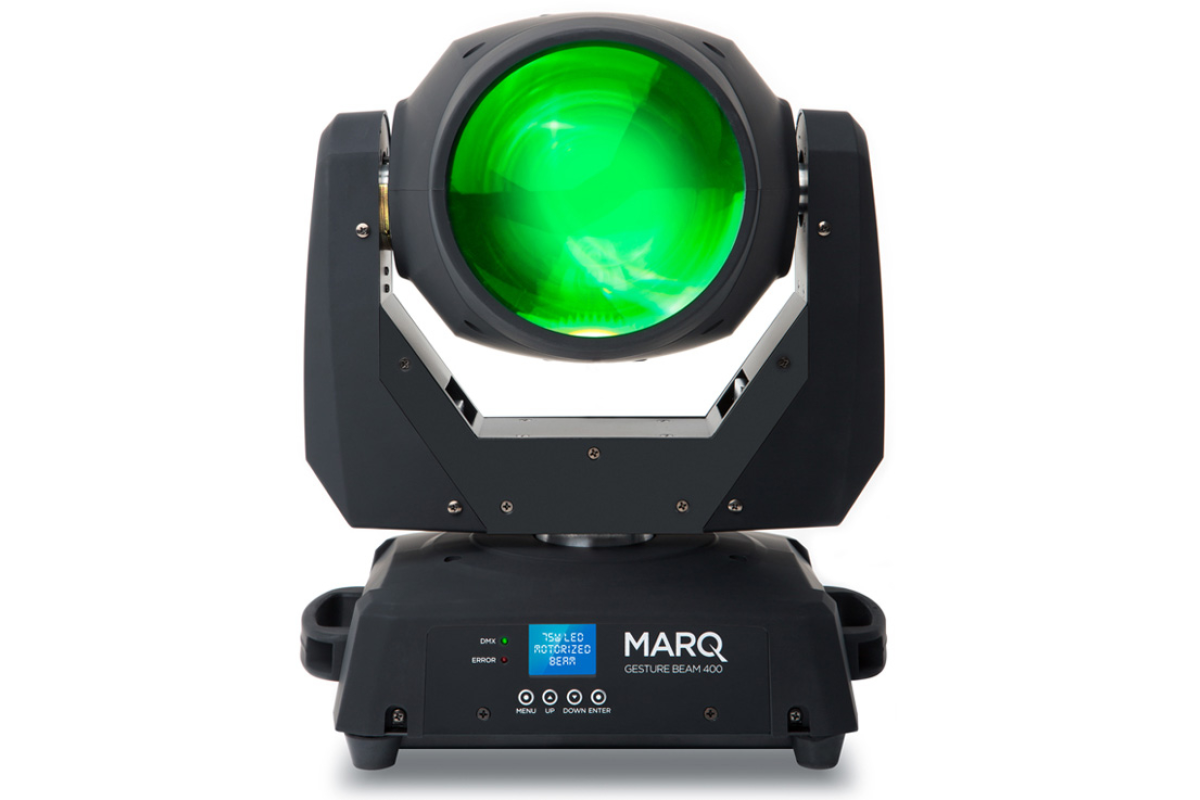Gesture Beam 400 генерирует четкий и мощный луч света для создания визуальных эффектов, а также способен имитировать поисковый прожектор благодаря встроенному режиму sky-scanning. Четыре разных режима slave позволяют создавать комплексные автоматические программы без необходимости использования DMX контроллера, а цветной дисплей и удобное меню обеспечивают удобство управления и отображают всю необходимую информацию. Более того, Gesture Beam 400 может также использоваться в качестве заливки, благодаря наличию "Frost" фильтра.
